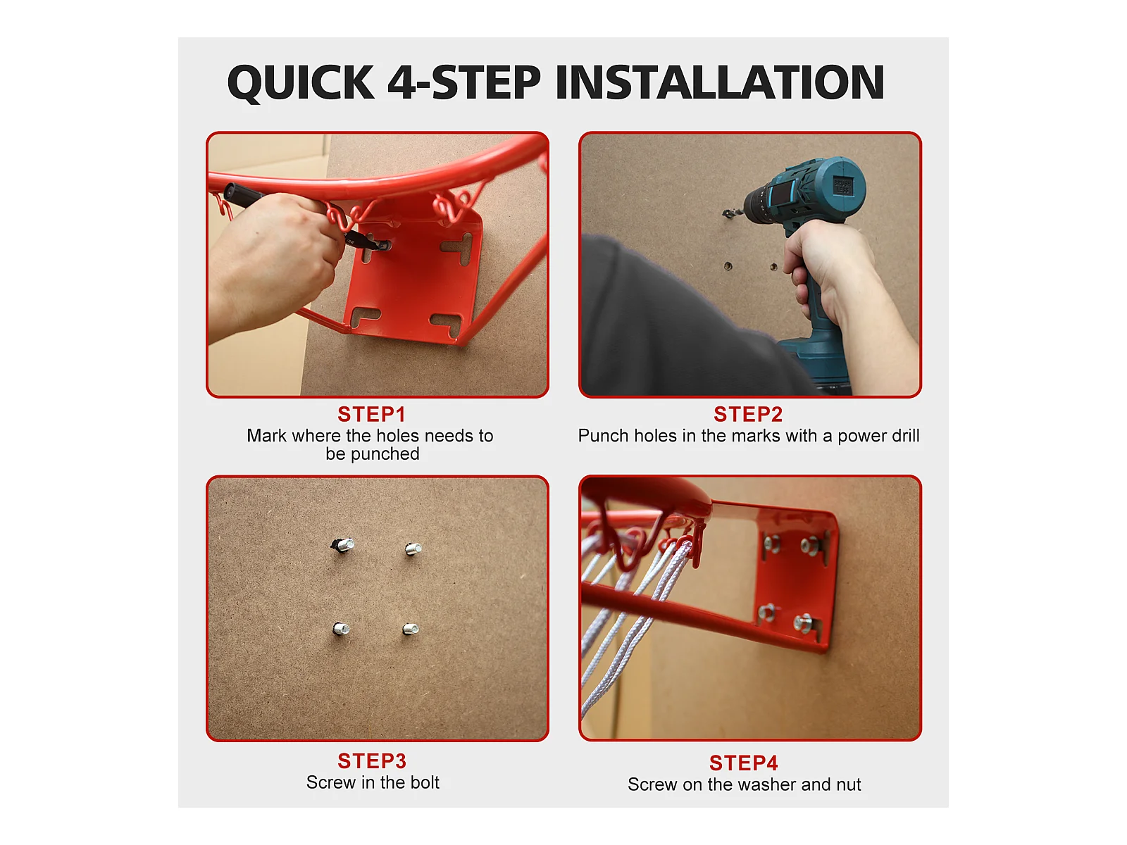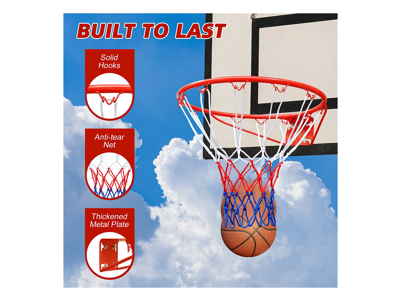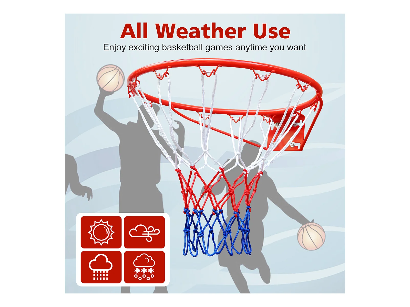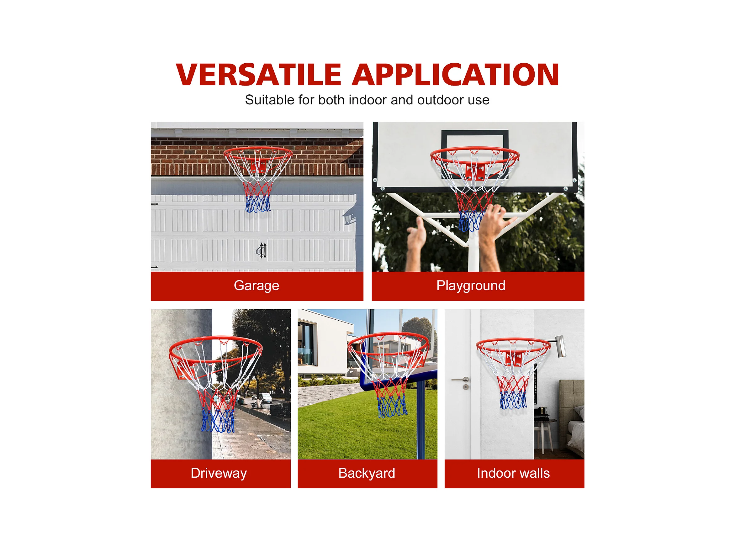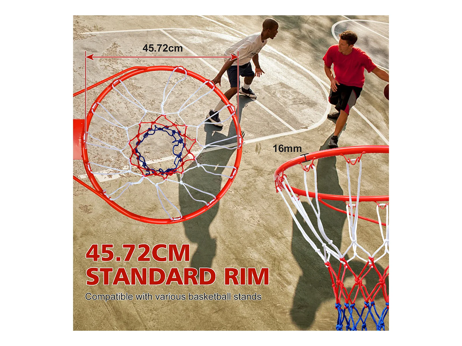 Panier de basket remplacement, montage mural ou porte, acier robuste, filet nylon, rouge (58x50x10 cm)