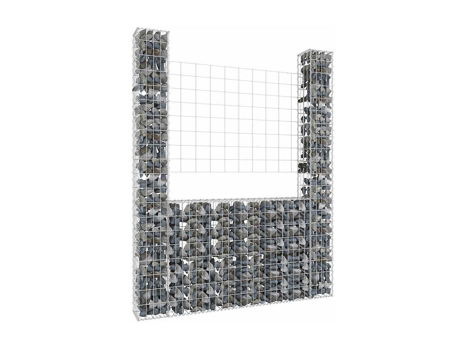 Panier de gabion-Mur en gabion en forme de U avec 2 poteaux Fer 140x20x200 cm