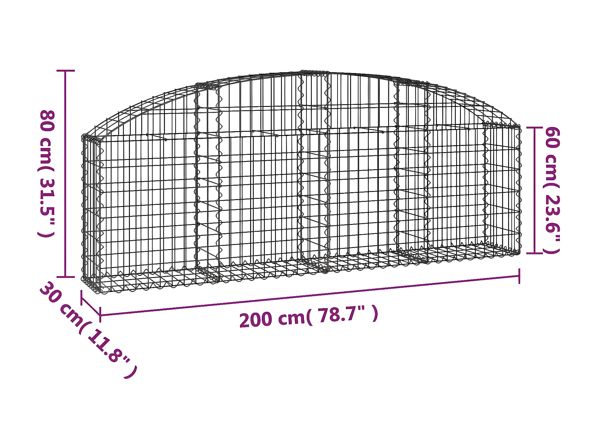 Panier de gabions arqué 200x30x60-80 Fer galvanisé
