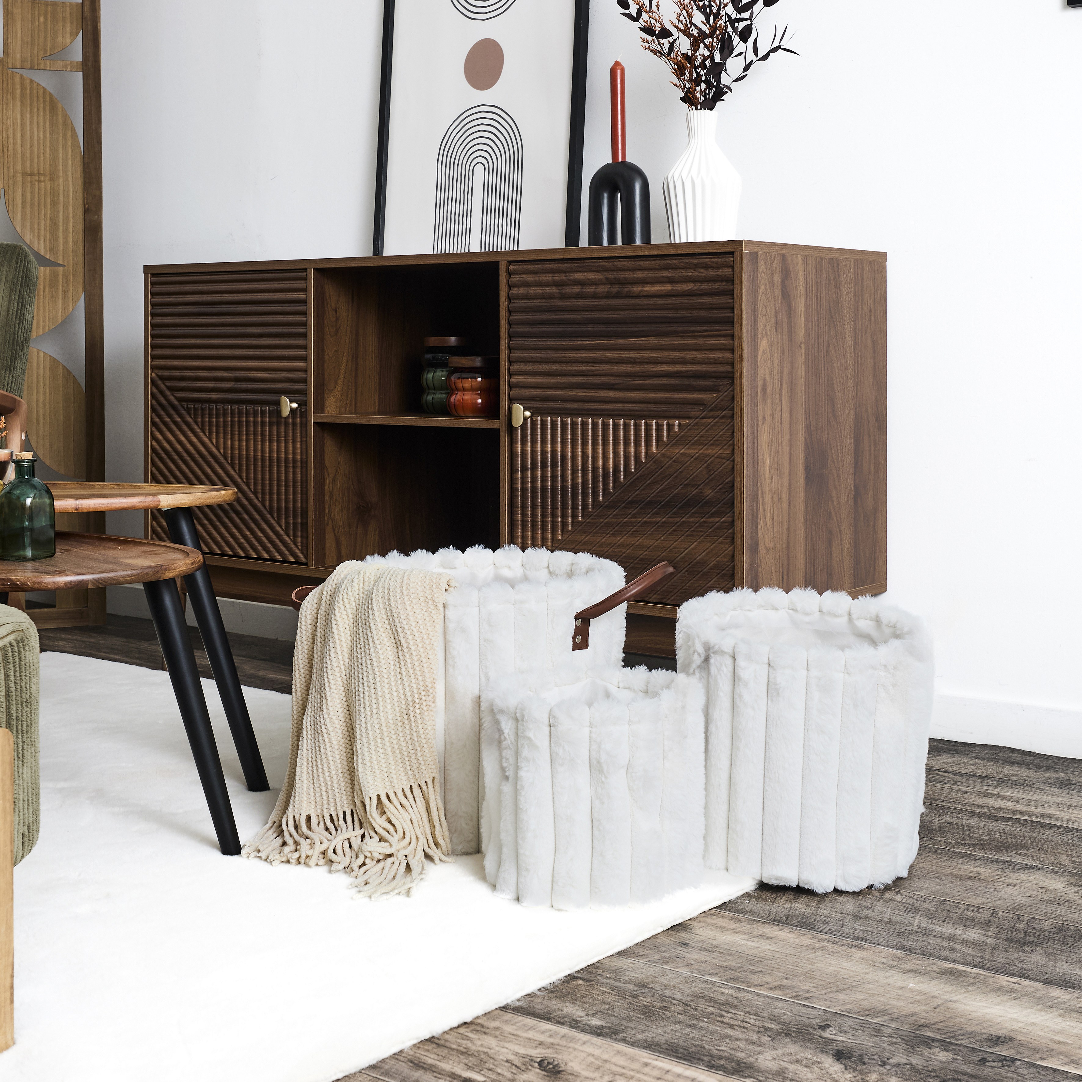 Lot de 3 Paniers Déco "Effet Fourrure" 28cm Blanc