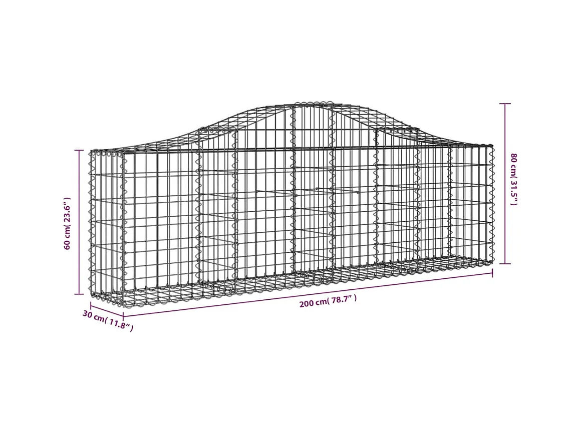 Paniers à gabions arqués 6 pcs 200x30x60/80 cm Fer galvanisé