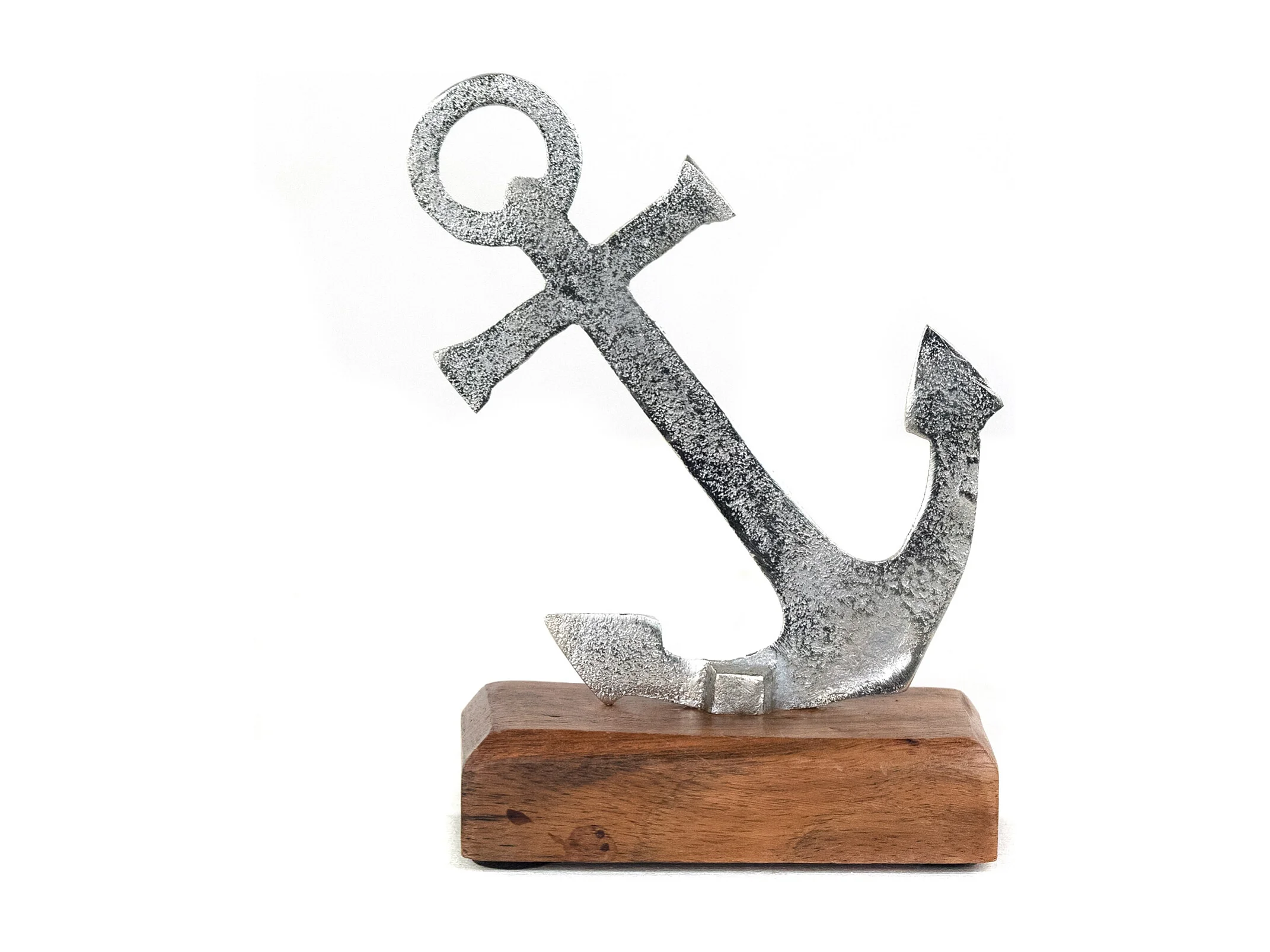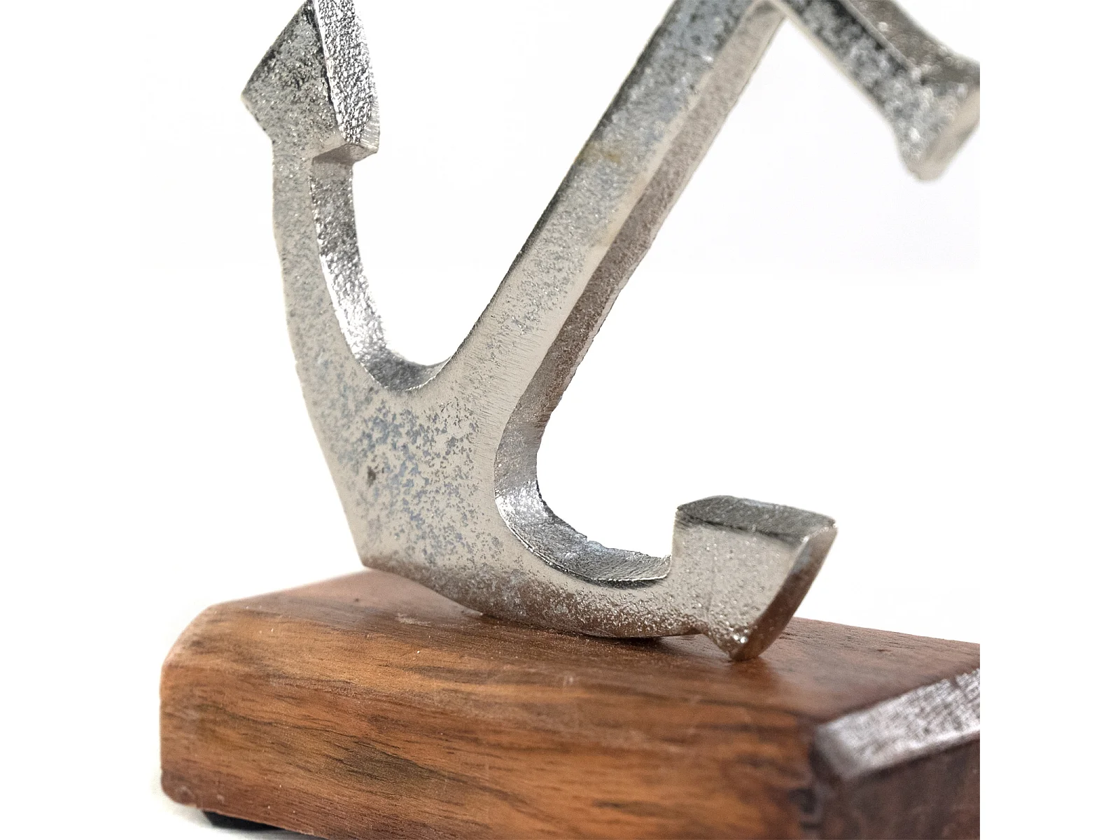PANNEAU D'AFFICHAGE Ancre maritime et rose des vents Métal, bois de mangue argent-brun