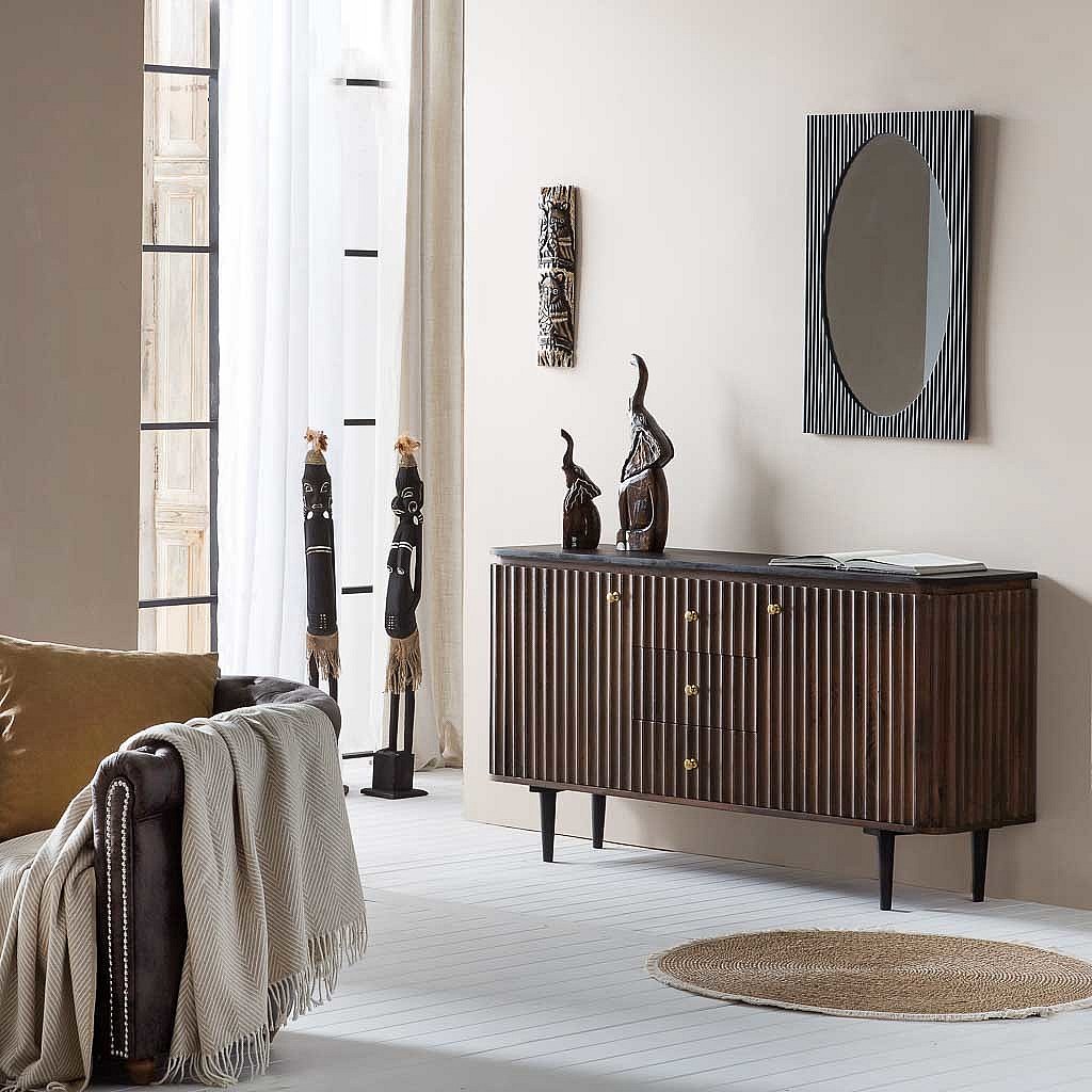 Miroir en bois de paulownia - L. 107 x H. 90 cm - Doré - EYOB