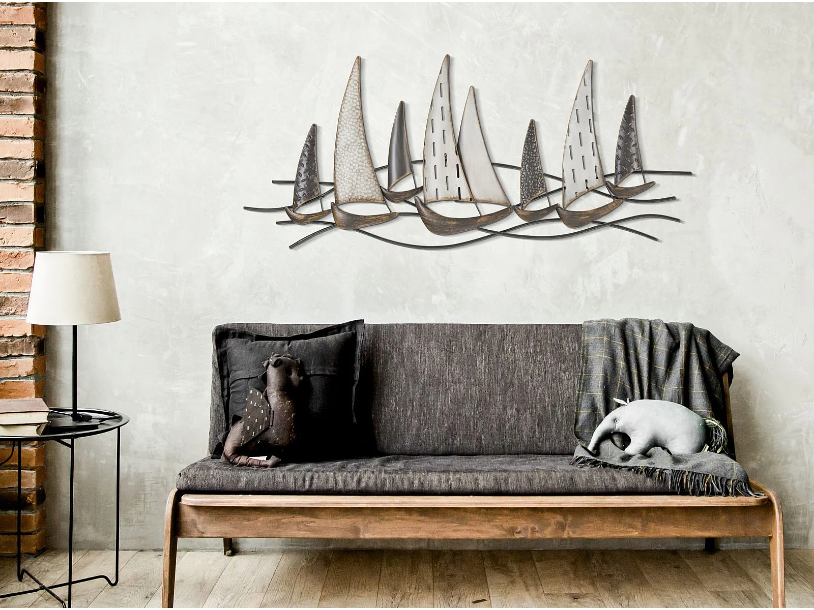 Déco Murale en Métal "Bateaux en Mer" 114cm Multicolore