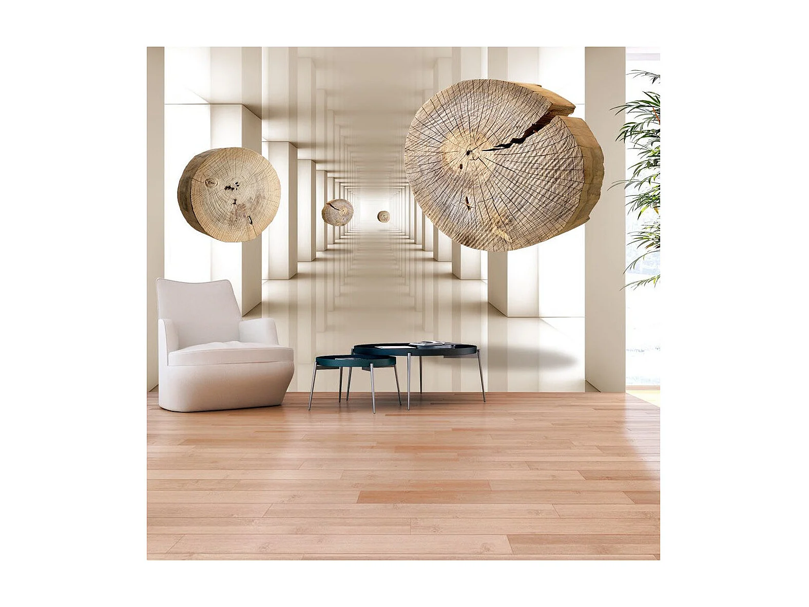 Papier Peint "Cercles de Bois Volants" 245 x 350 cm