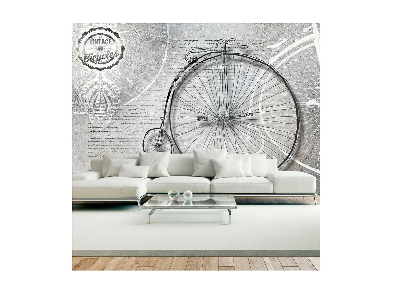 Papier Peint "Vintage Bicycles Black & White" 140 x 200 cm