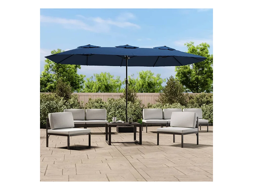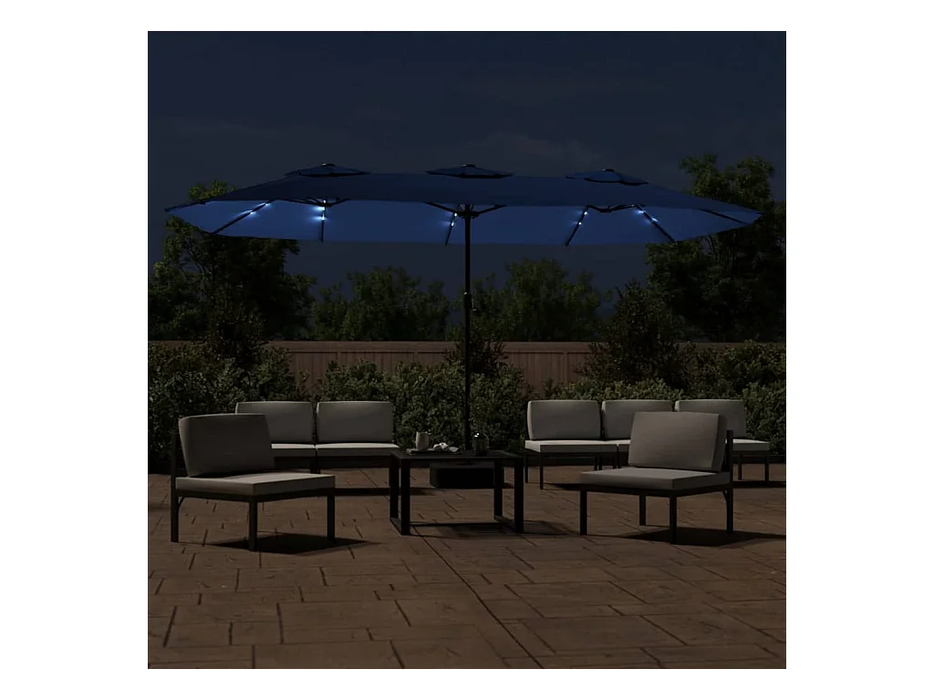 Parasol à double tête avec LED bleu azuré 449x245 cm GWE6558