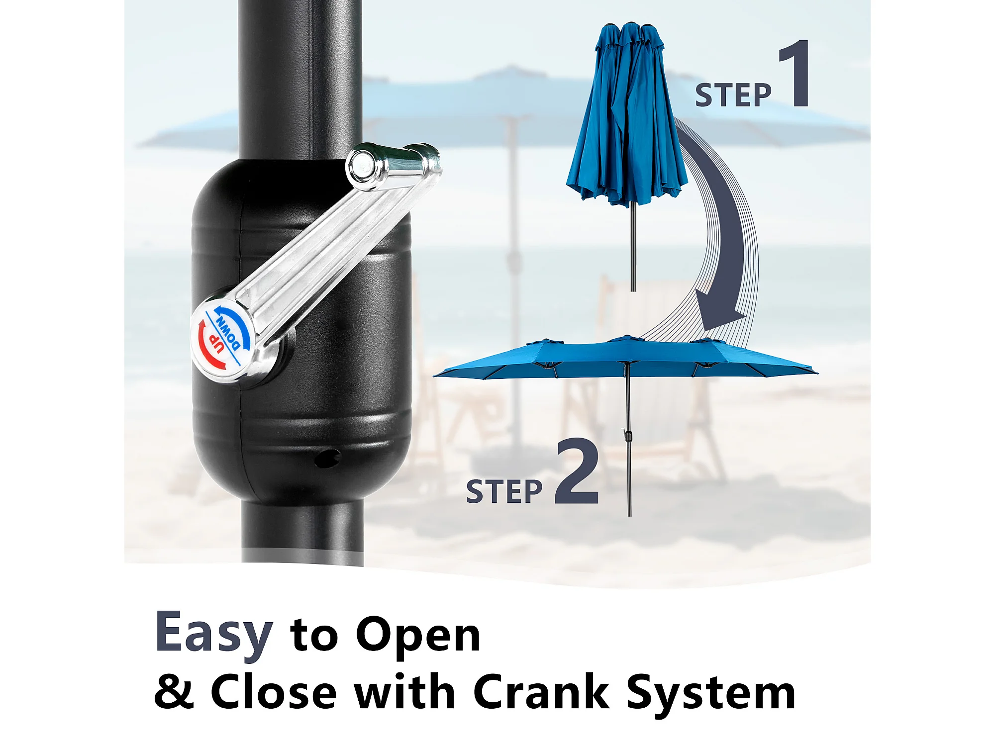 Parasol à double tête Bleu ciel (4,53m x 2,67m) - Parasol déporté - Système de levée à manivelle - Parfait pour jardin ou terrasse - Protection solaire optimale