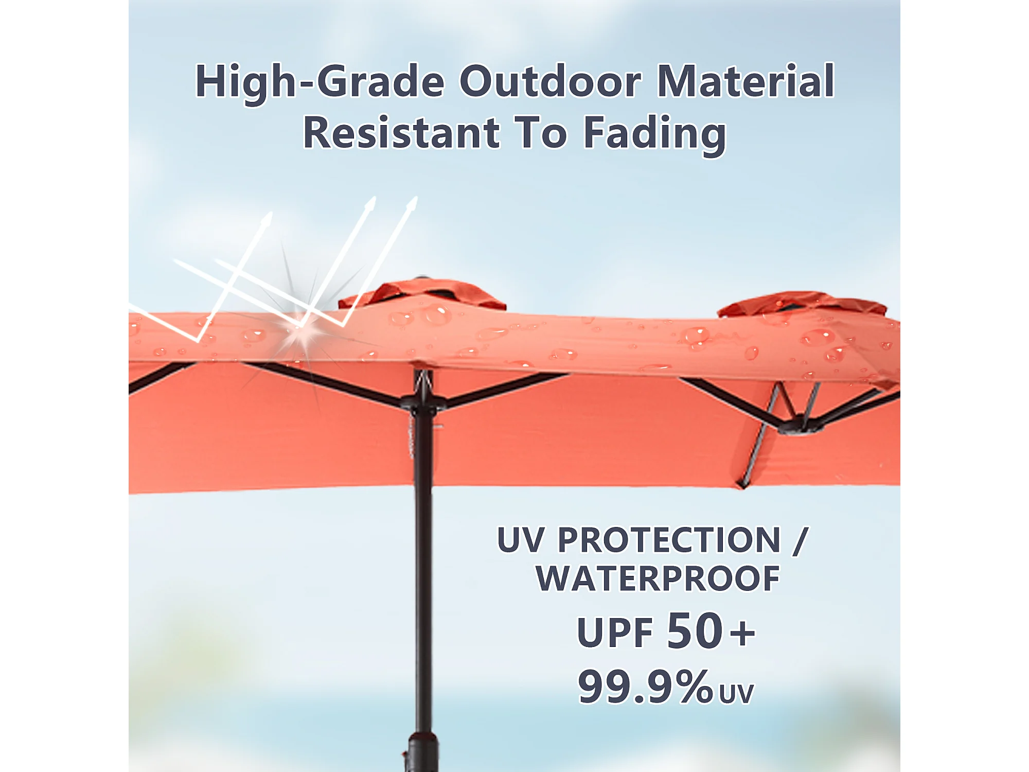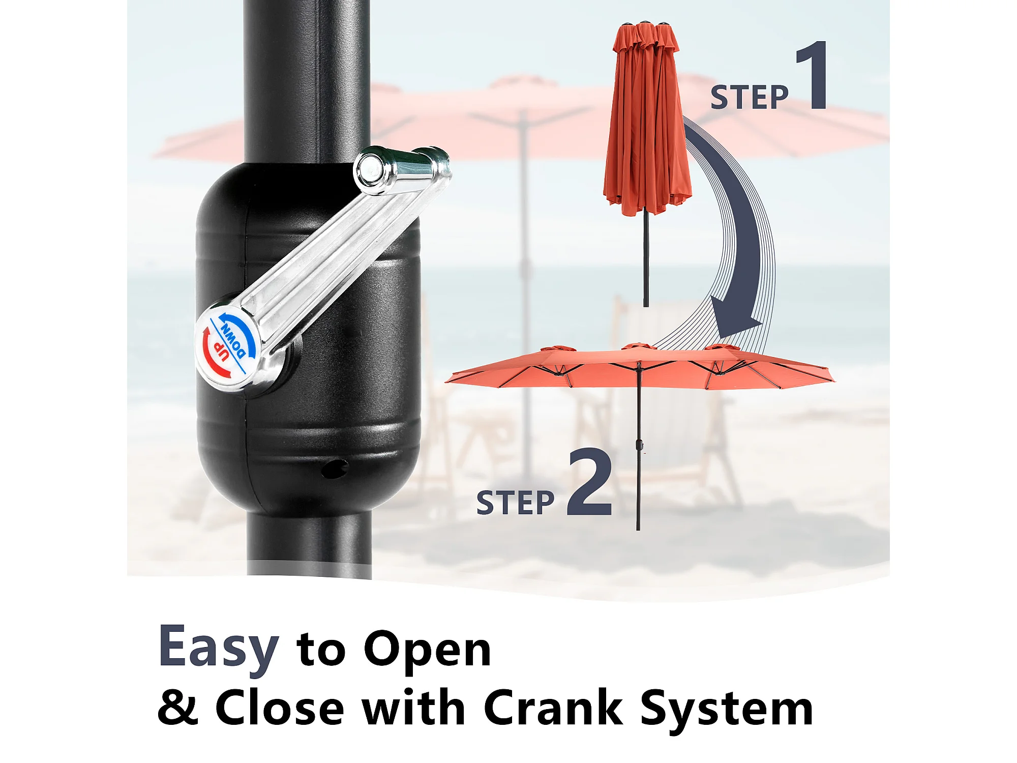 Parasol à double tête orange (4,53m x 2,67m) - Parasol déporté - Système de levée à manivelle - Parfait pour jardin ou terrasse - Protection solaire optimale