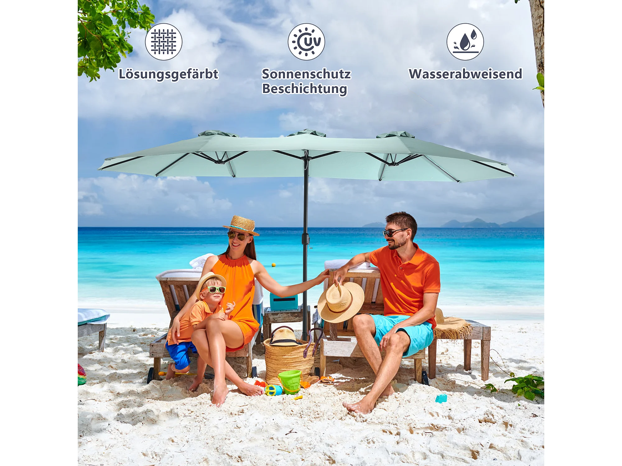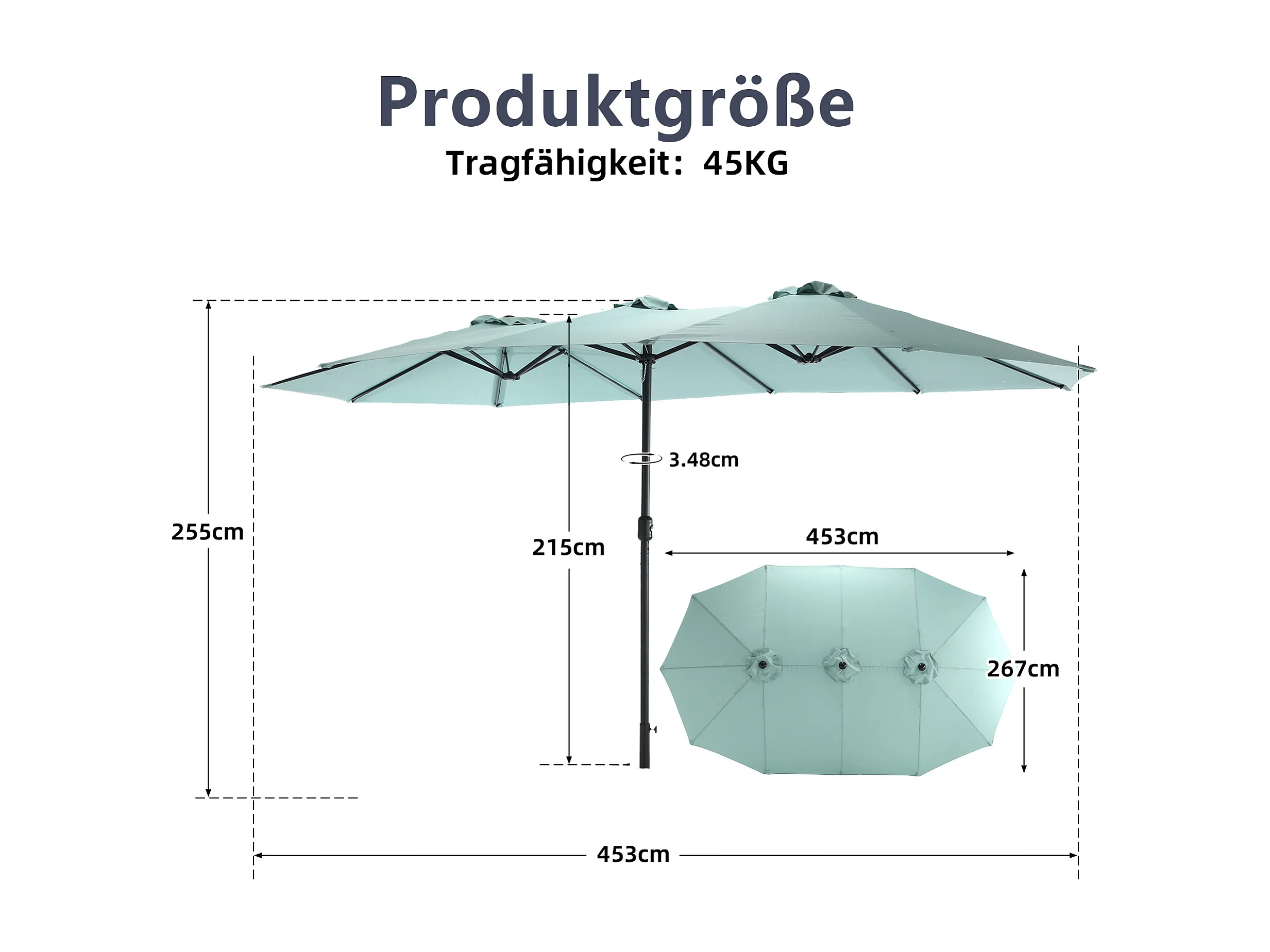 Parasol à double tête vert clair (4,53m x 2,67m) - Parasol déporté - Système de levée à manivelle - Parfait pour jardin ou terrasse - Protection solaire optimale