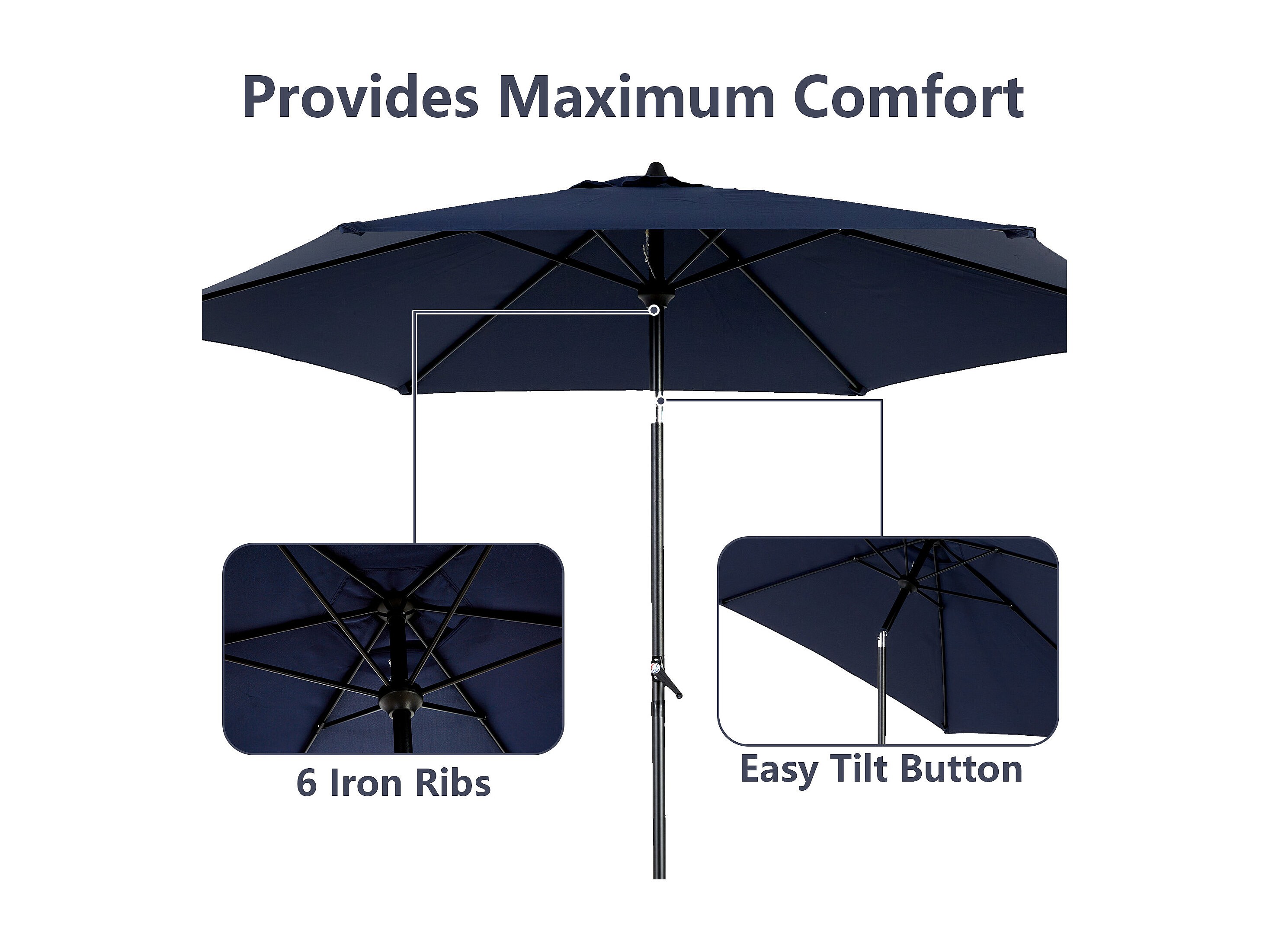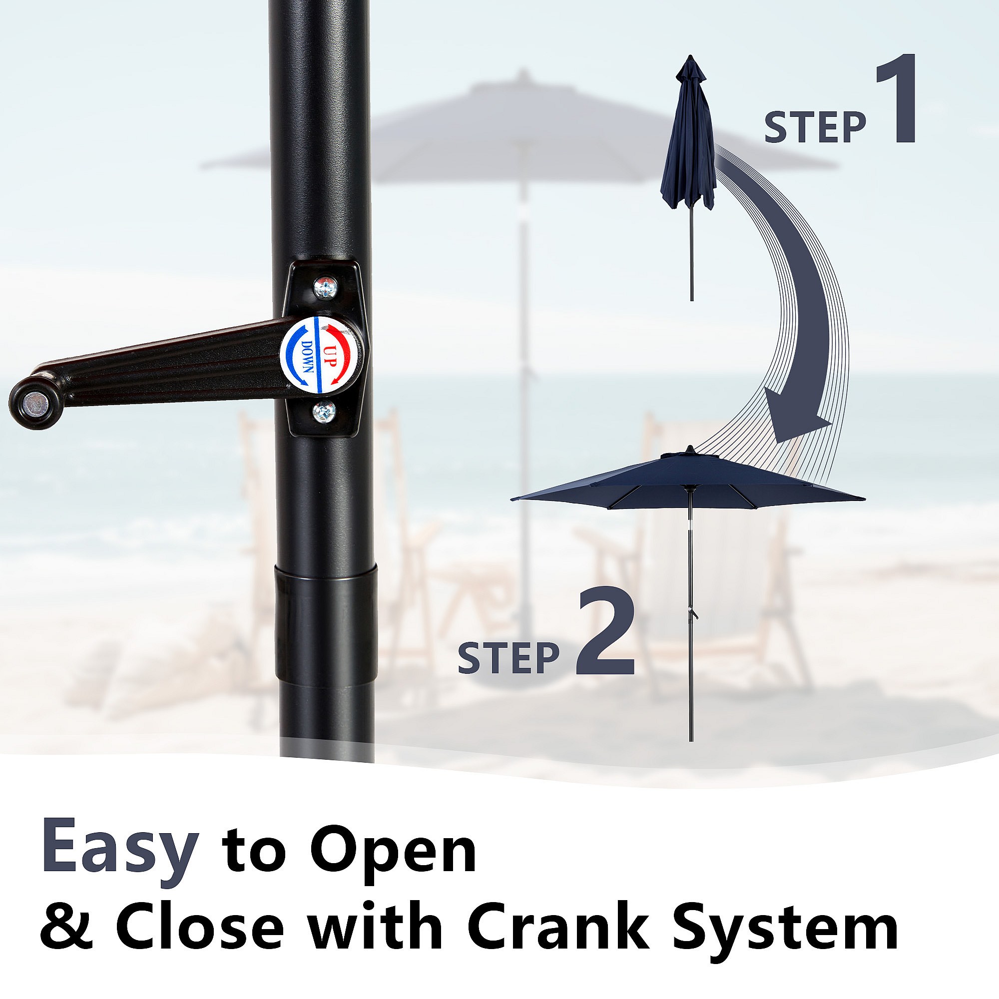 Parasol de Patio 270 cm avec Manivelle, Inclinaison par Bouton-Poussoir, Parasol de Marché à Double Toit avec Canopée Protectrice UV, 8 Côtes (Style 2,Marine)
