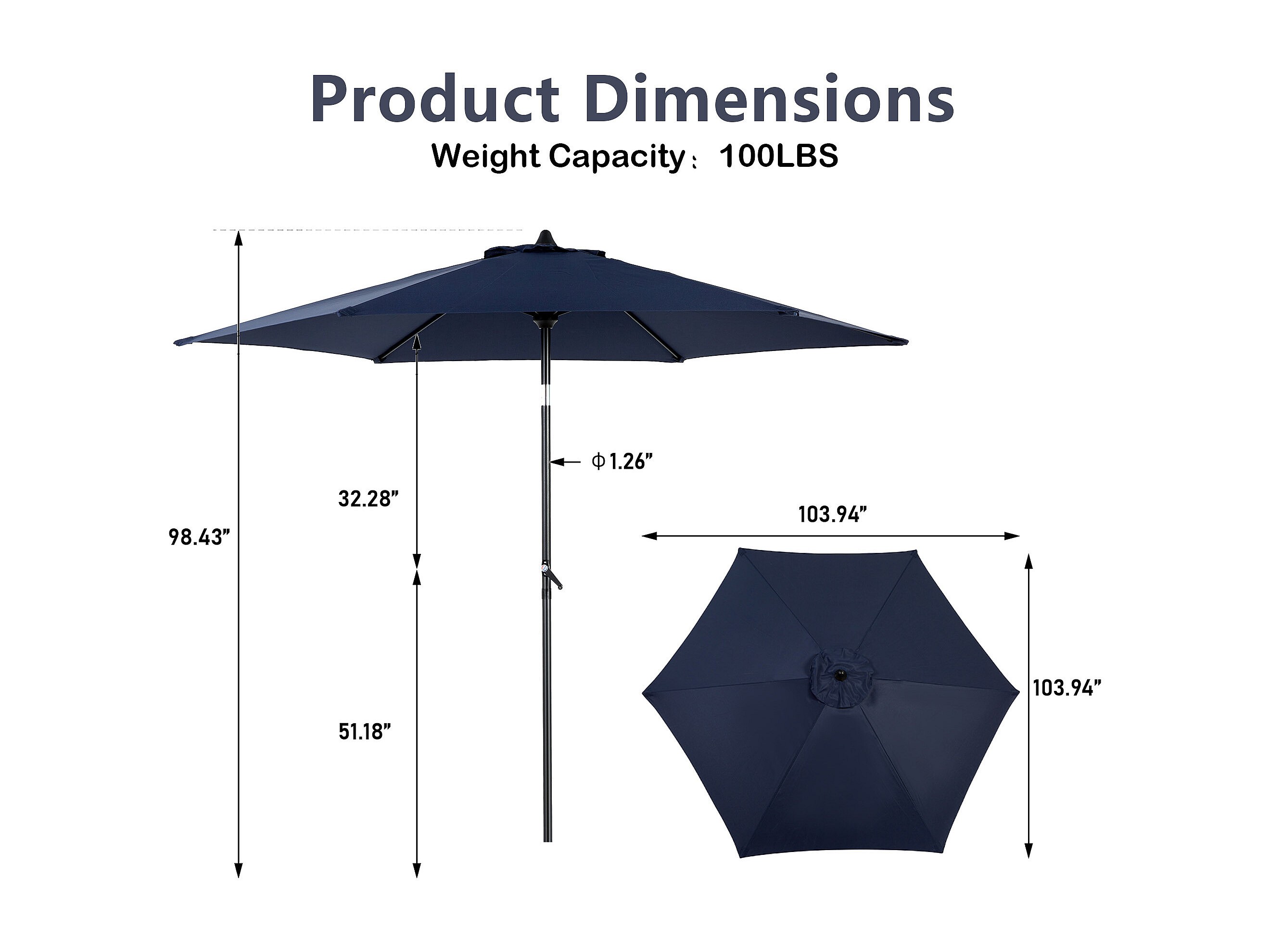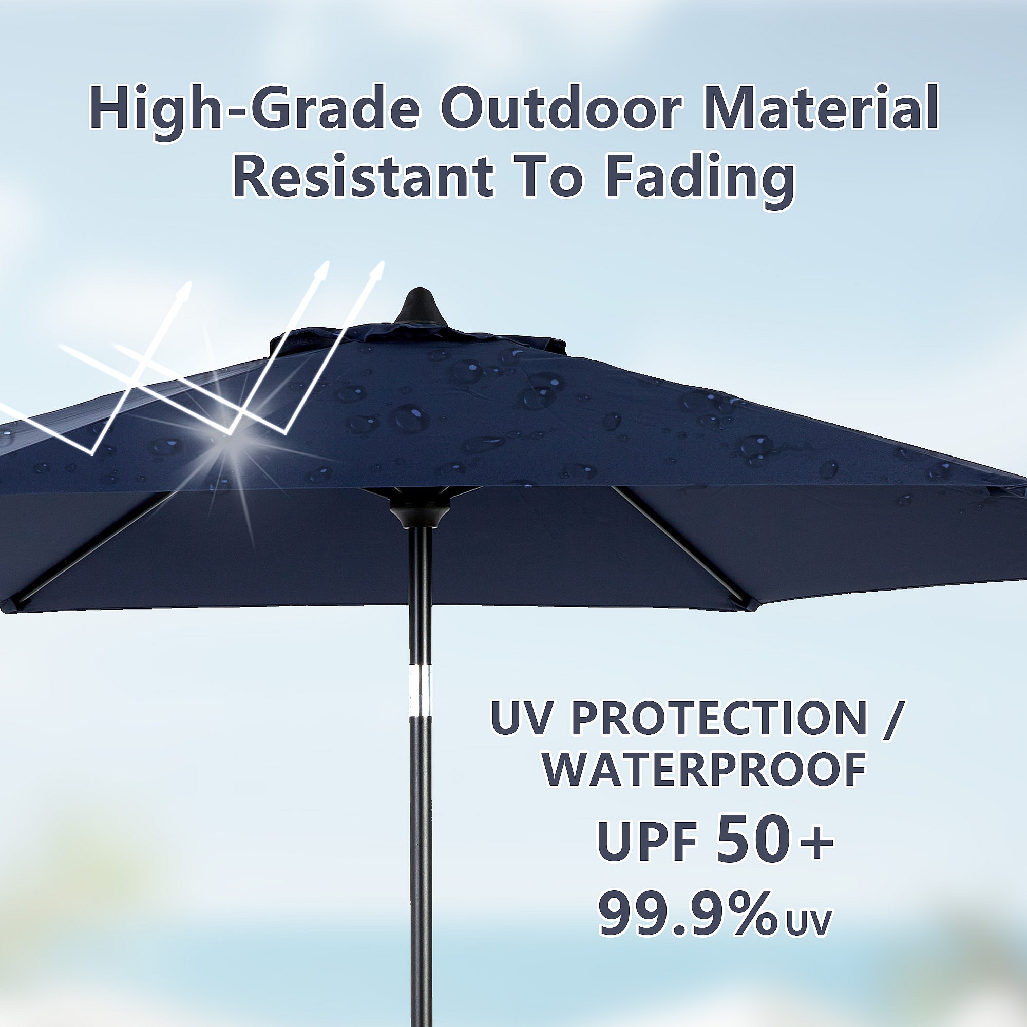 Parasol de jardin bleu nuit - Parasol extérieur monoposte - Protection solaire UPF 50+ - Grande taille de 264 cm pour terrasse et balcon
