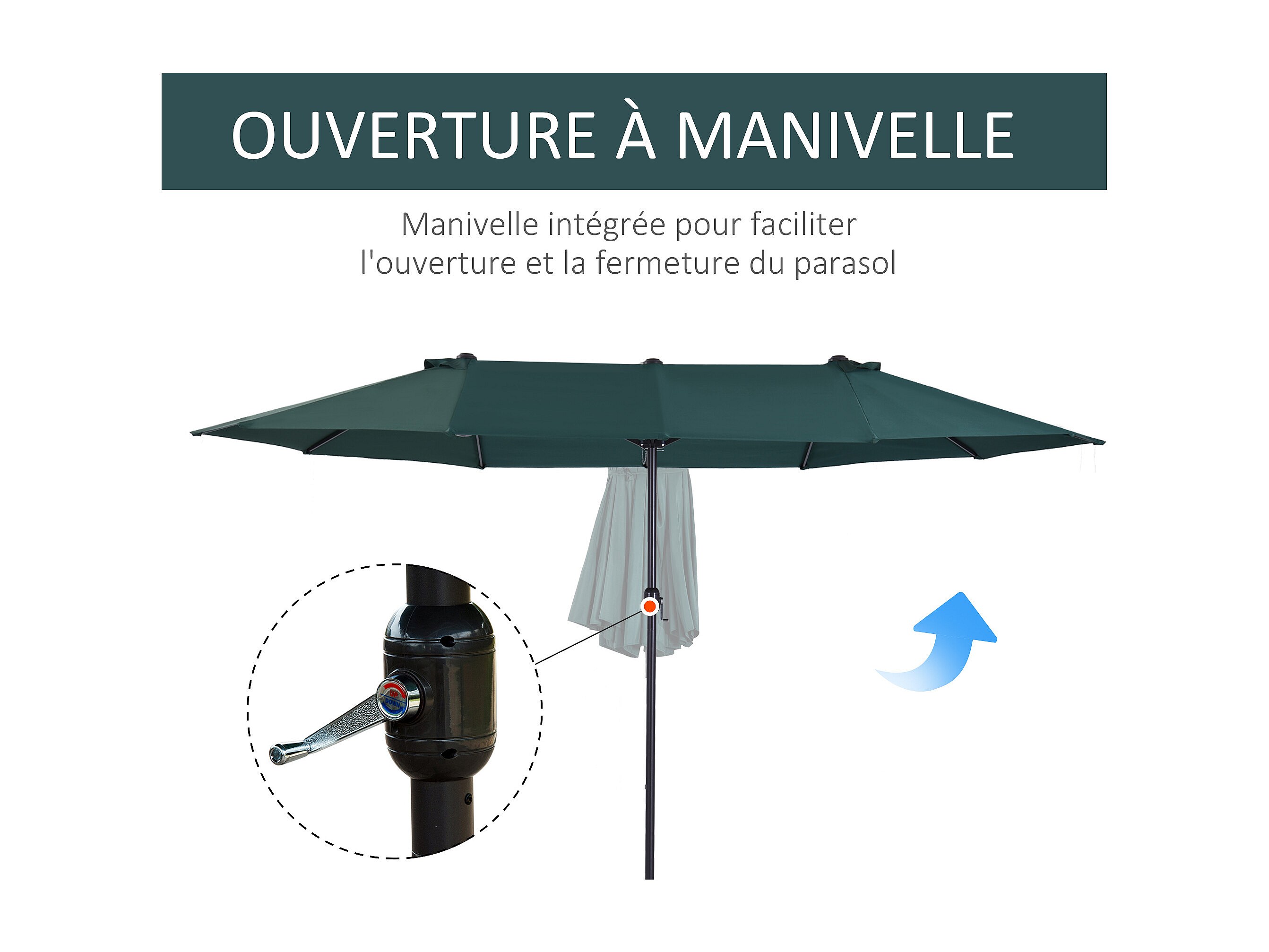 Parasol de jardin XXL parasol grande taille 4,6L x 2,7l x 2,4H m ouverture fermeture manivelle acier polyester haute densité vert