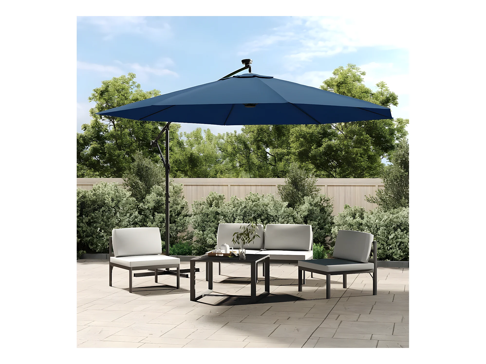 Parasol déporté octogonal inclinable rabattable diamètre 2,97 m parasol de jardin avec pied en croix bleu