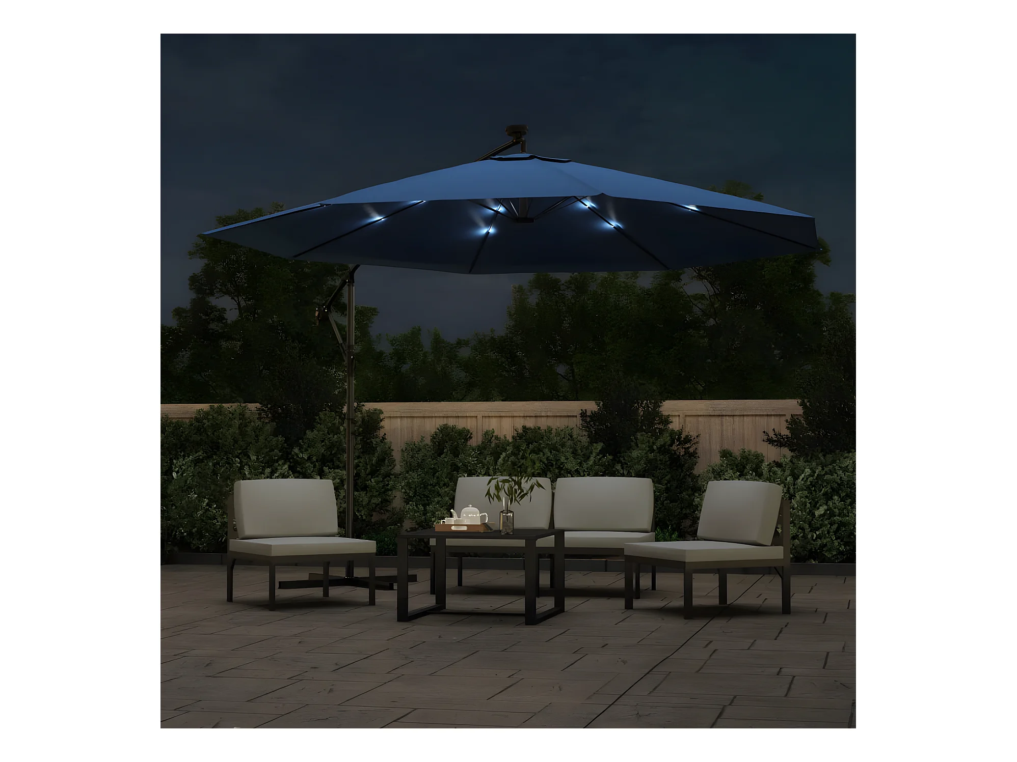 Parasol déporté avec mât et lumières LED Bleu azur 300 cm FR59272