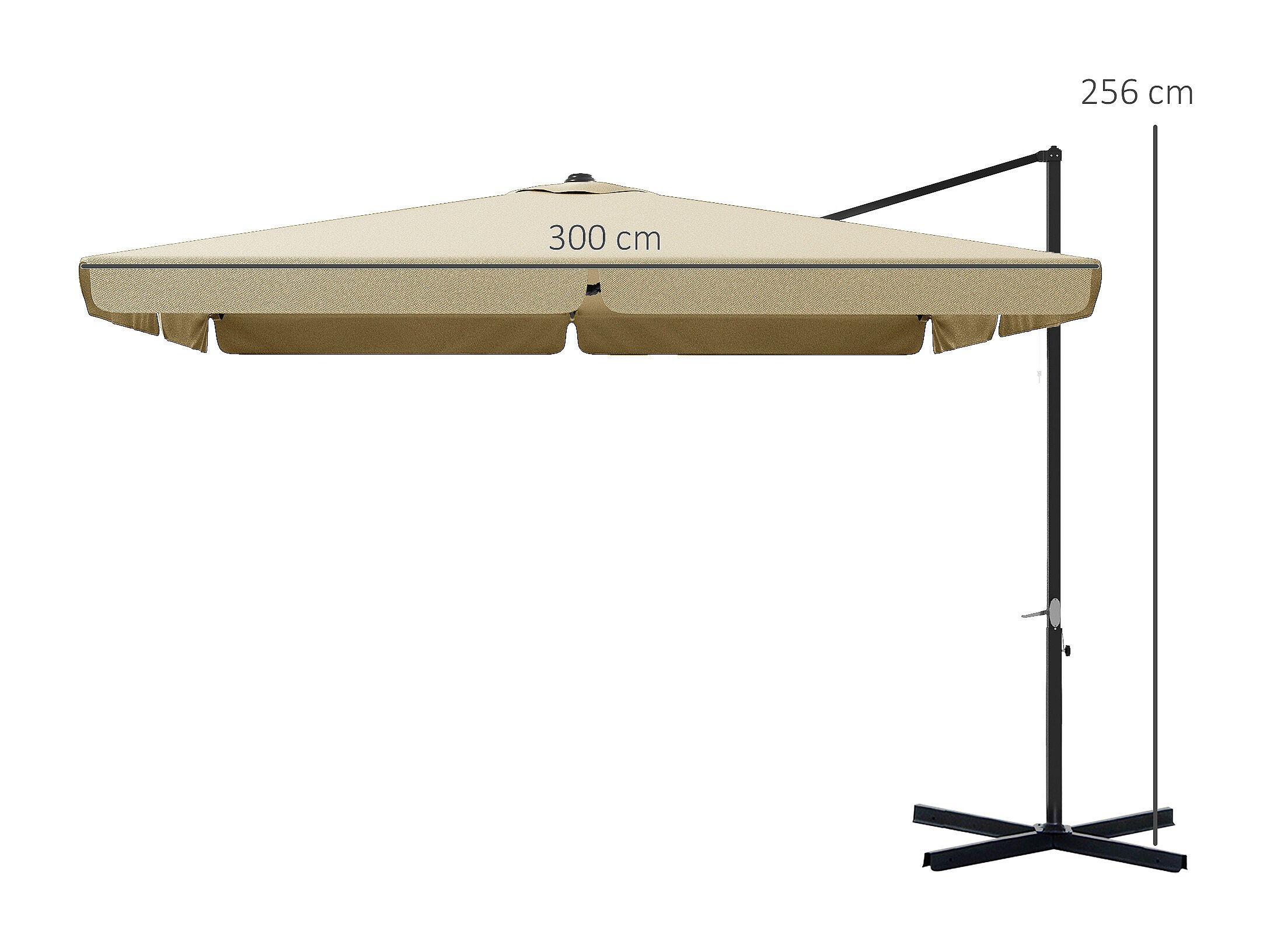 Parasol Déporté Carré 3M avec Base en Croix Poteau en Aluminium Rotatif à 360° Manivelle Inclinable 8 Baleines Beige