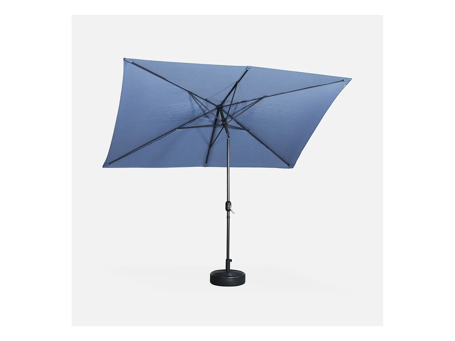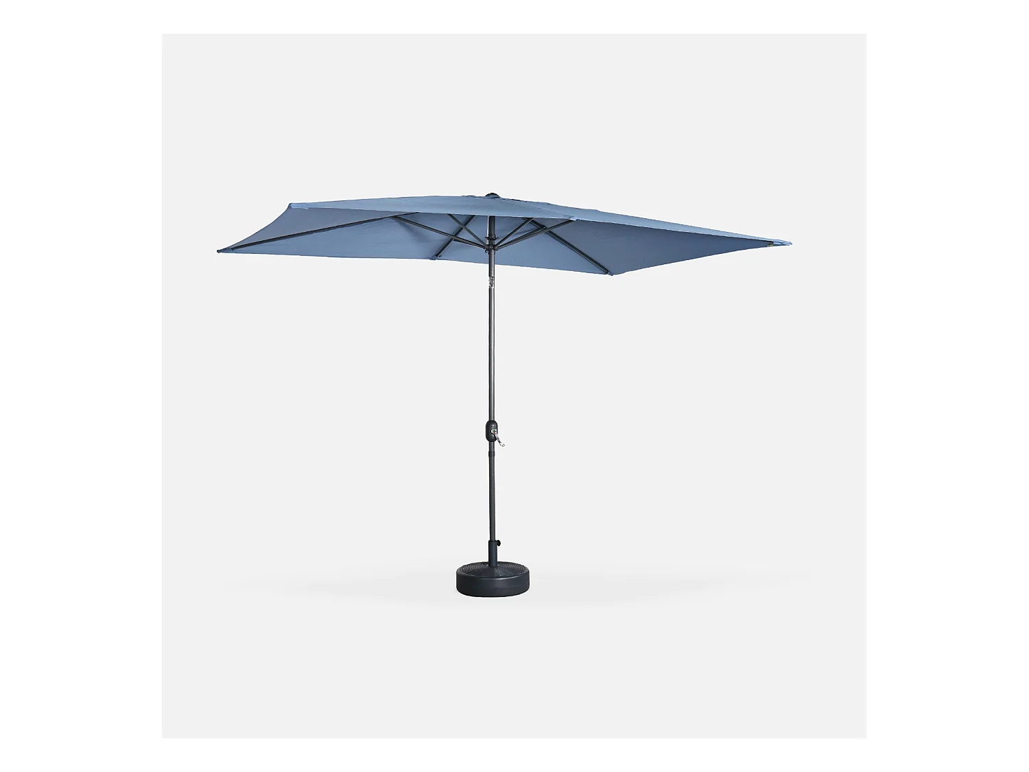 Parasol droit rectangulaire 2x3m - Touquet bleu grisé - mât central en aluminium orientable et manivelle d'ouverture