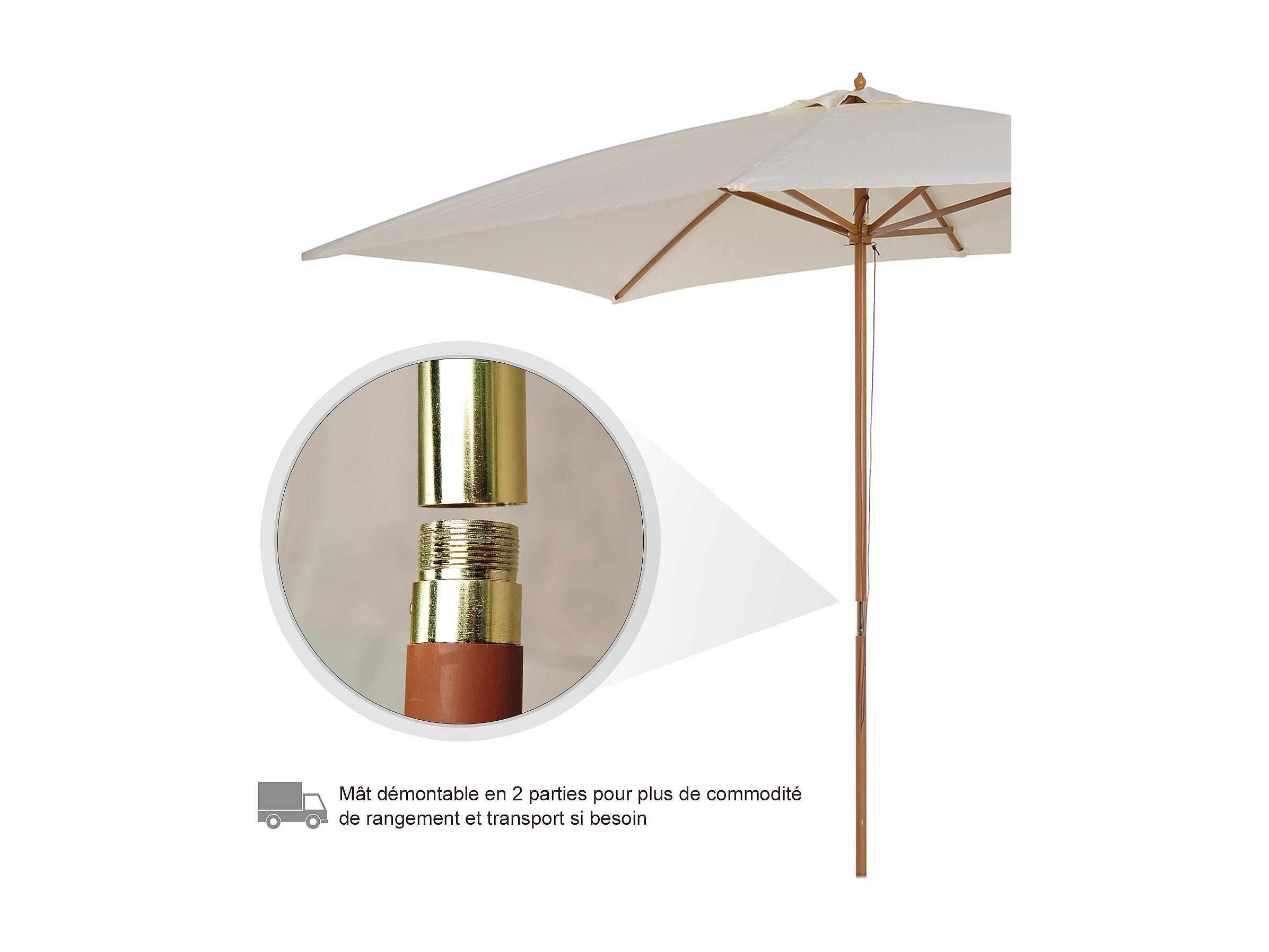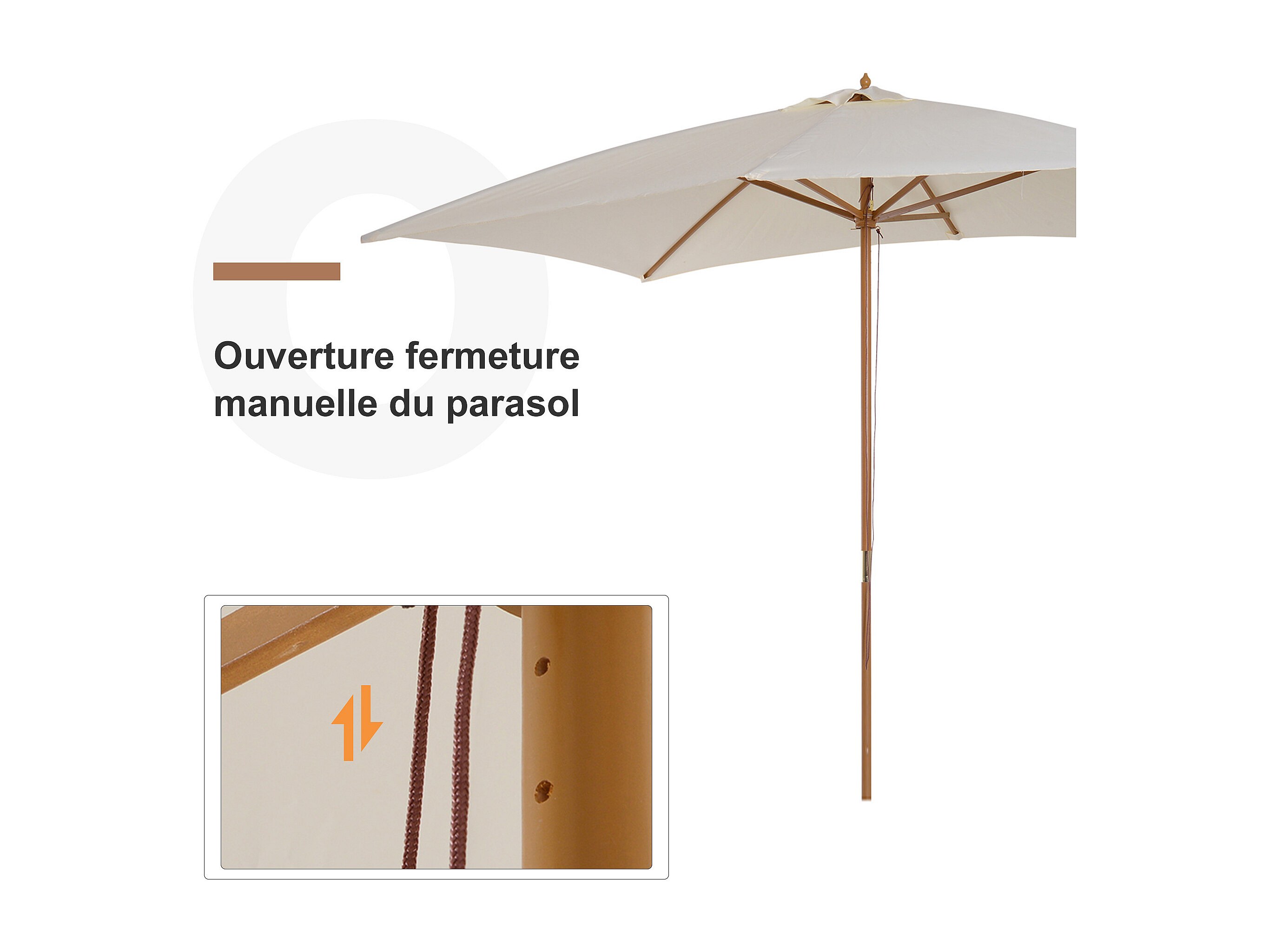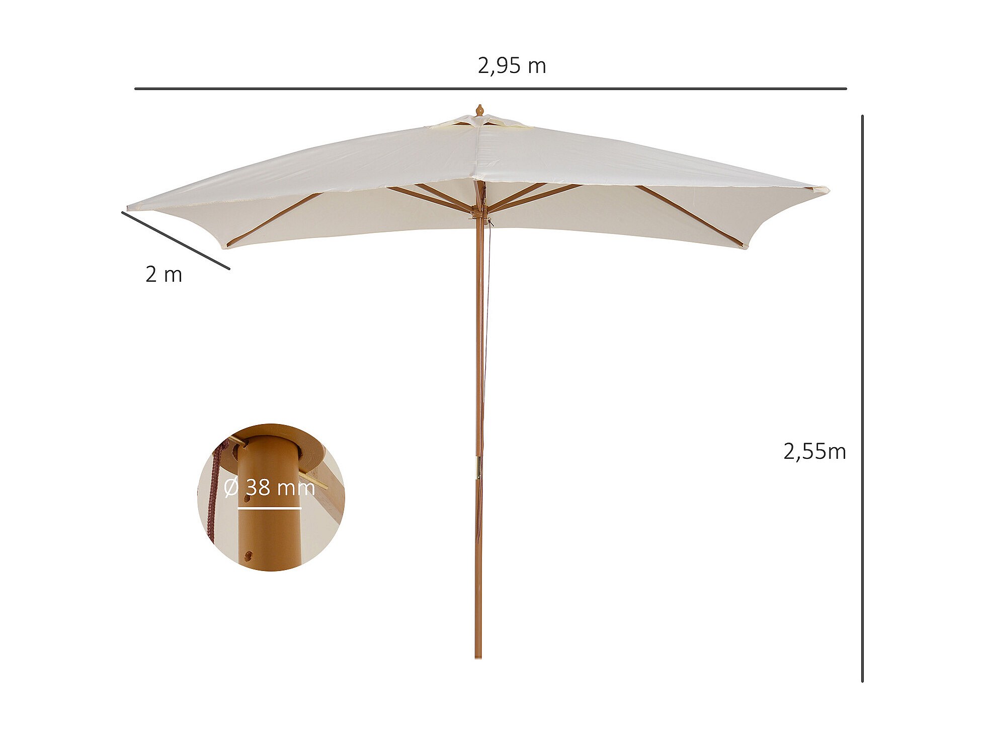 Parasol droit rectangulaire bois polyester haute densité 2,95L x 2l x 2,55H m crème