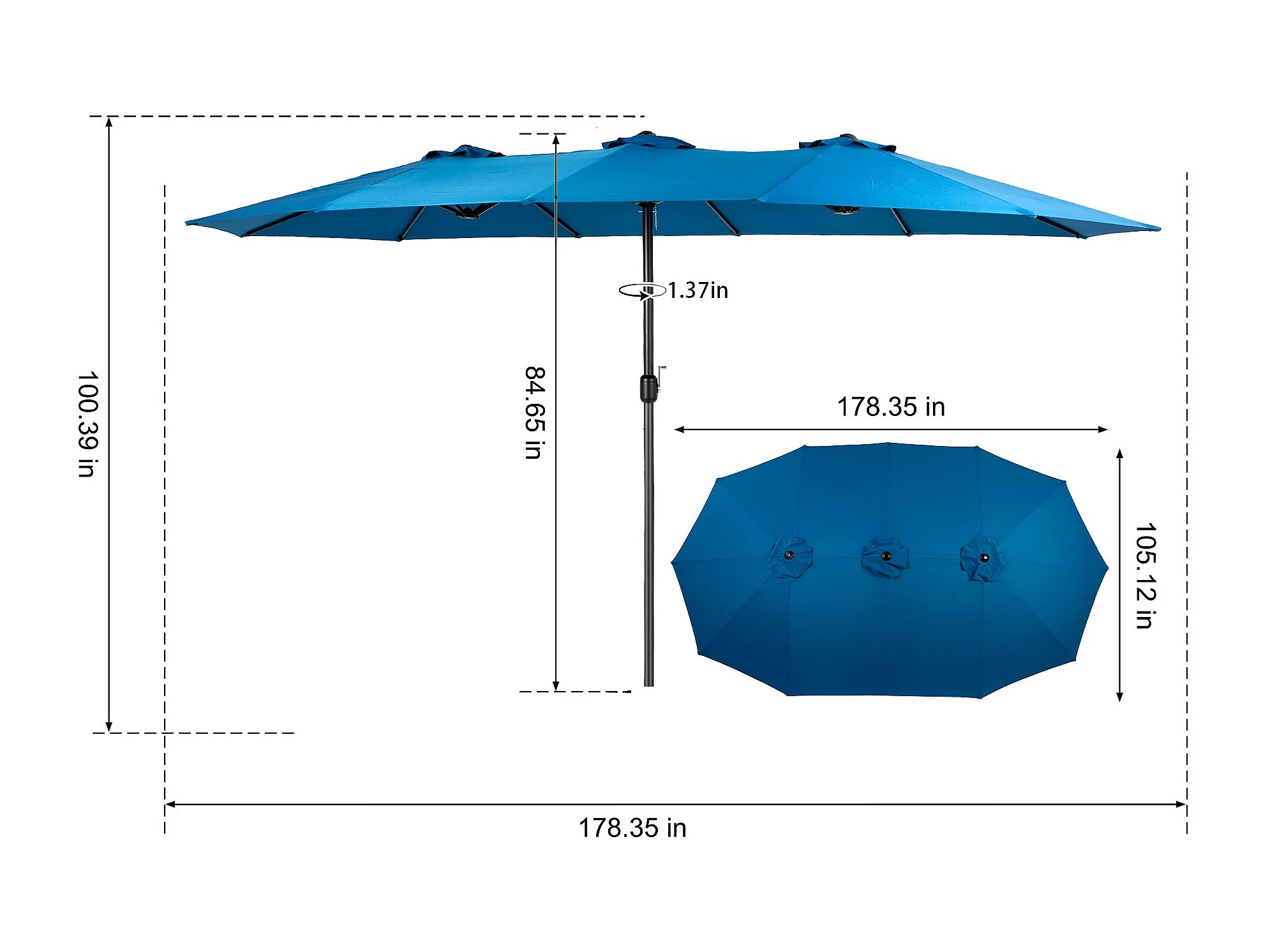Parasol extérieur double face rectangulaire avec manivelle, structure en acier, bleu marine (4.5x4.5x3m)