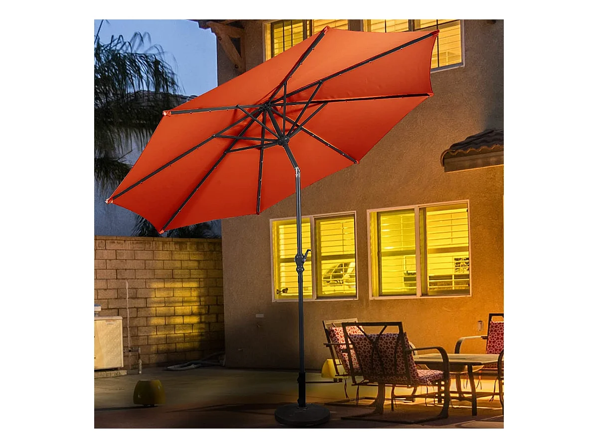 Parasol Inclinable Dia.300CM en Métal Toile Polyester Imperméable avec Ouvertures d'Aération pour Jardin,Terrasse Orange