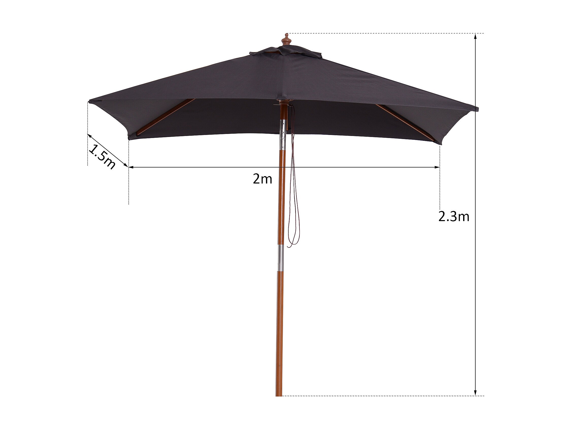 Parasol rectangulaire inclinable bois polyester haute densité 2L x 1,5l x 2,3H m gris foncé