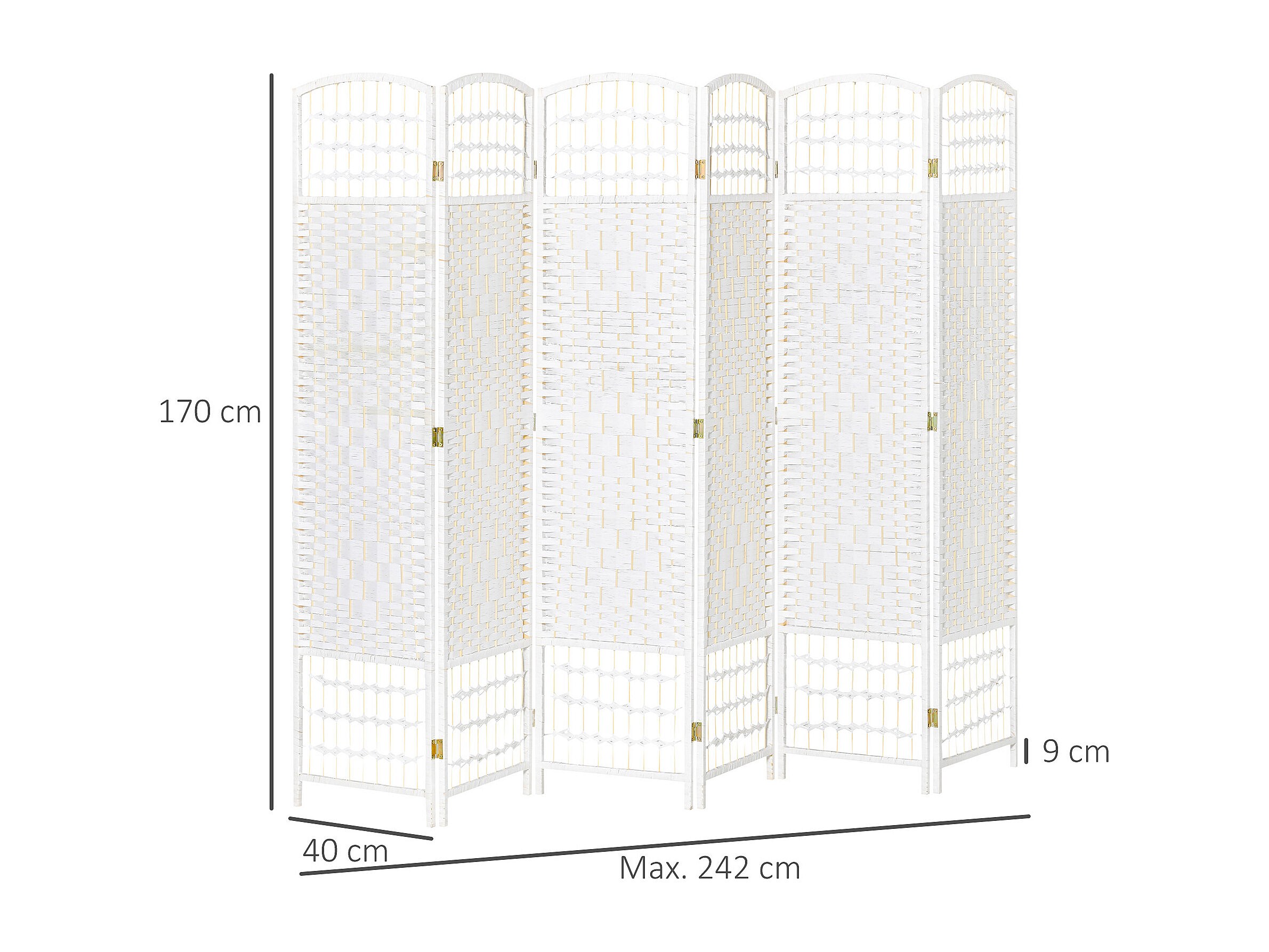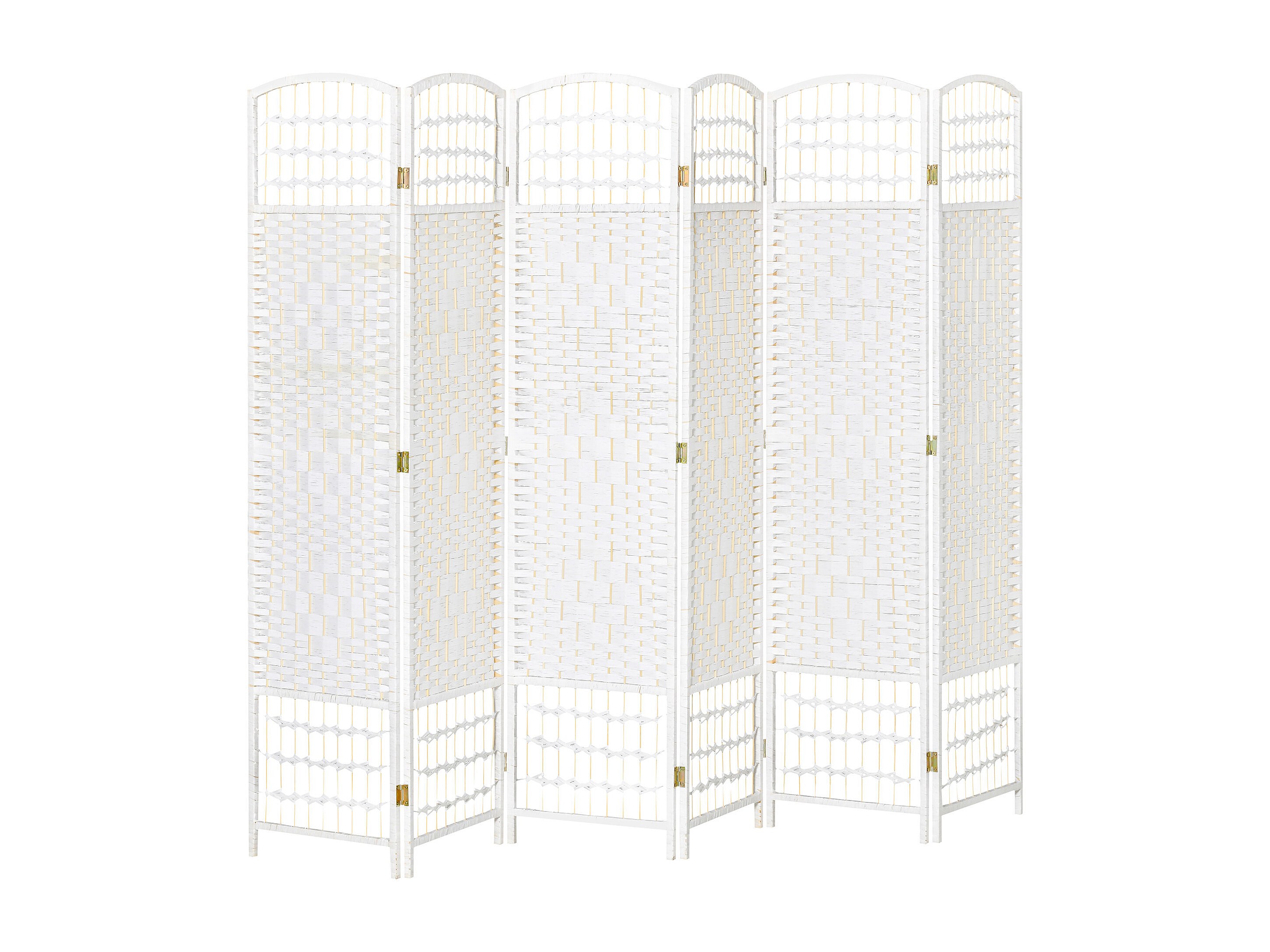 Paravent intérieur 6 panneaux pliables séparateur de pièce bois de peuplier bambou fibres de papier tressée blanc paille
