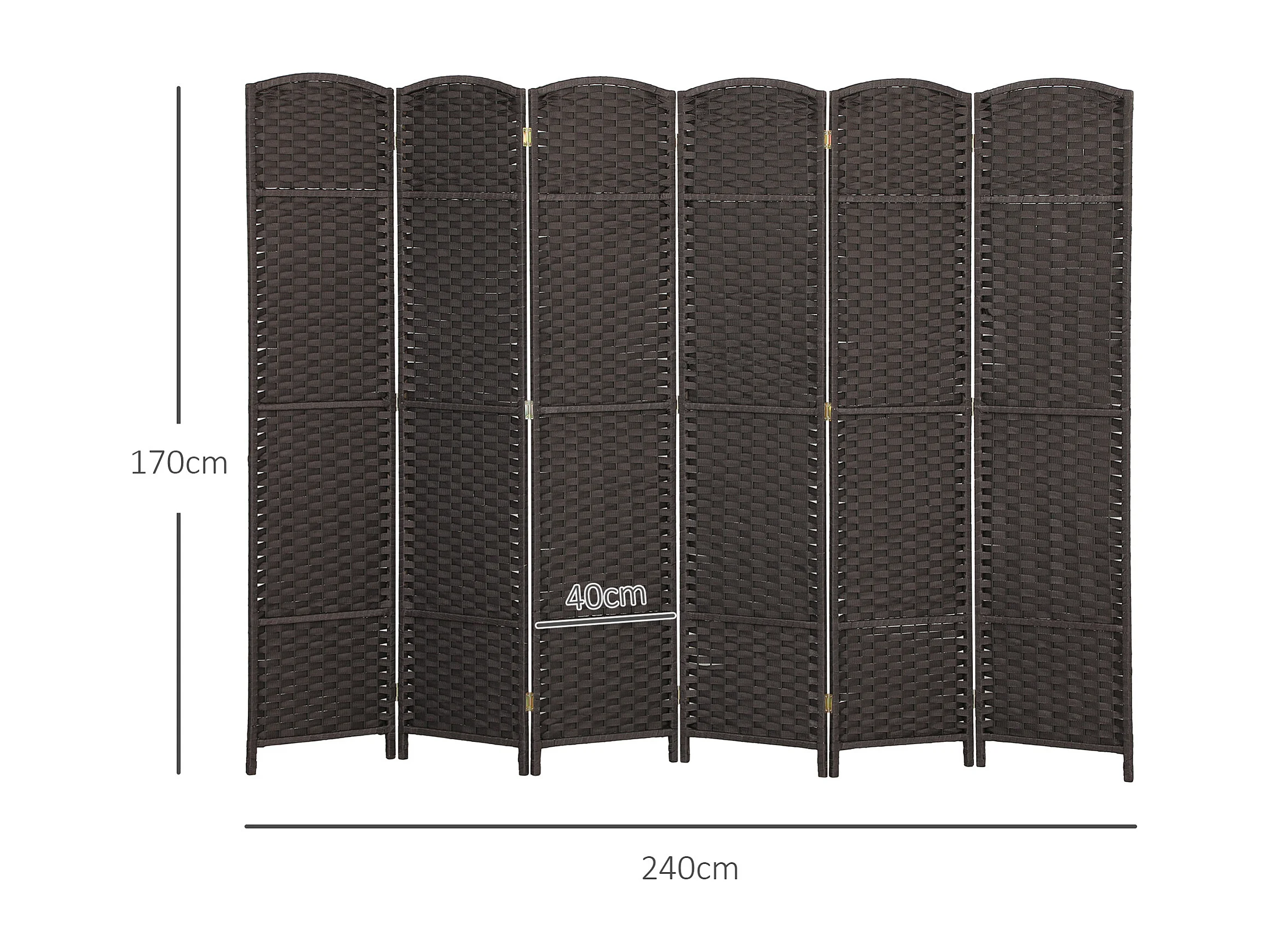 Paravent intérieur pliable 6 panneaux 240 x 170 cm - séparateur de pièce finition tressée - PP bois pin chocolat