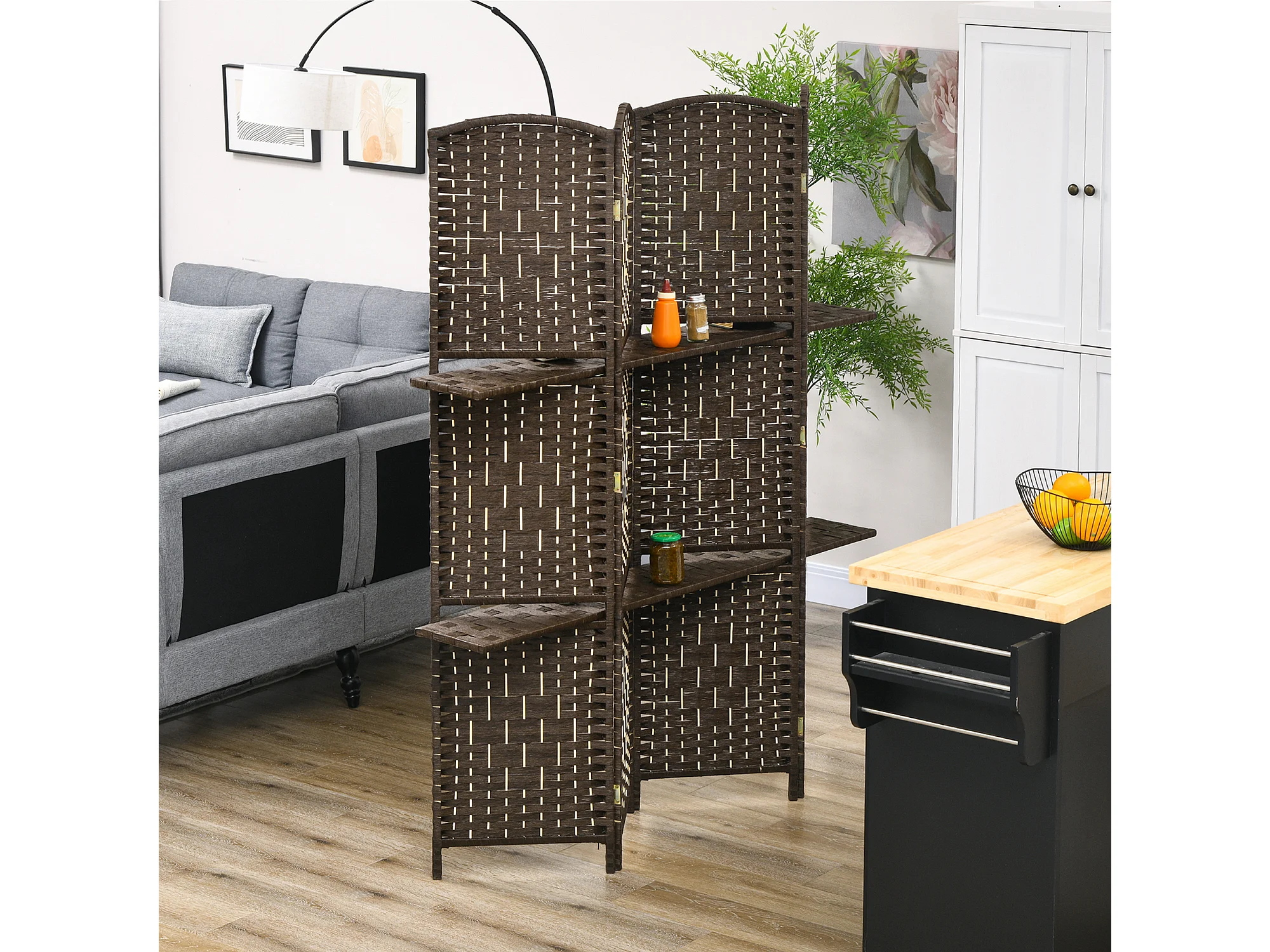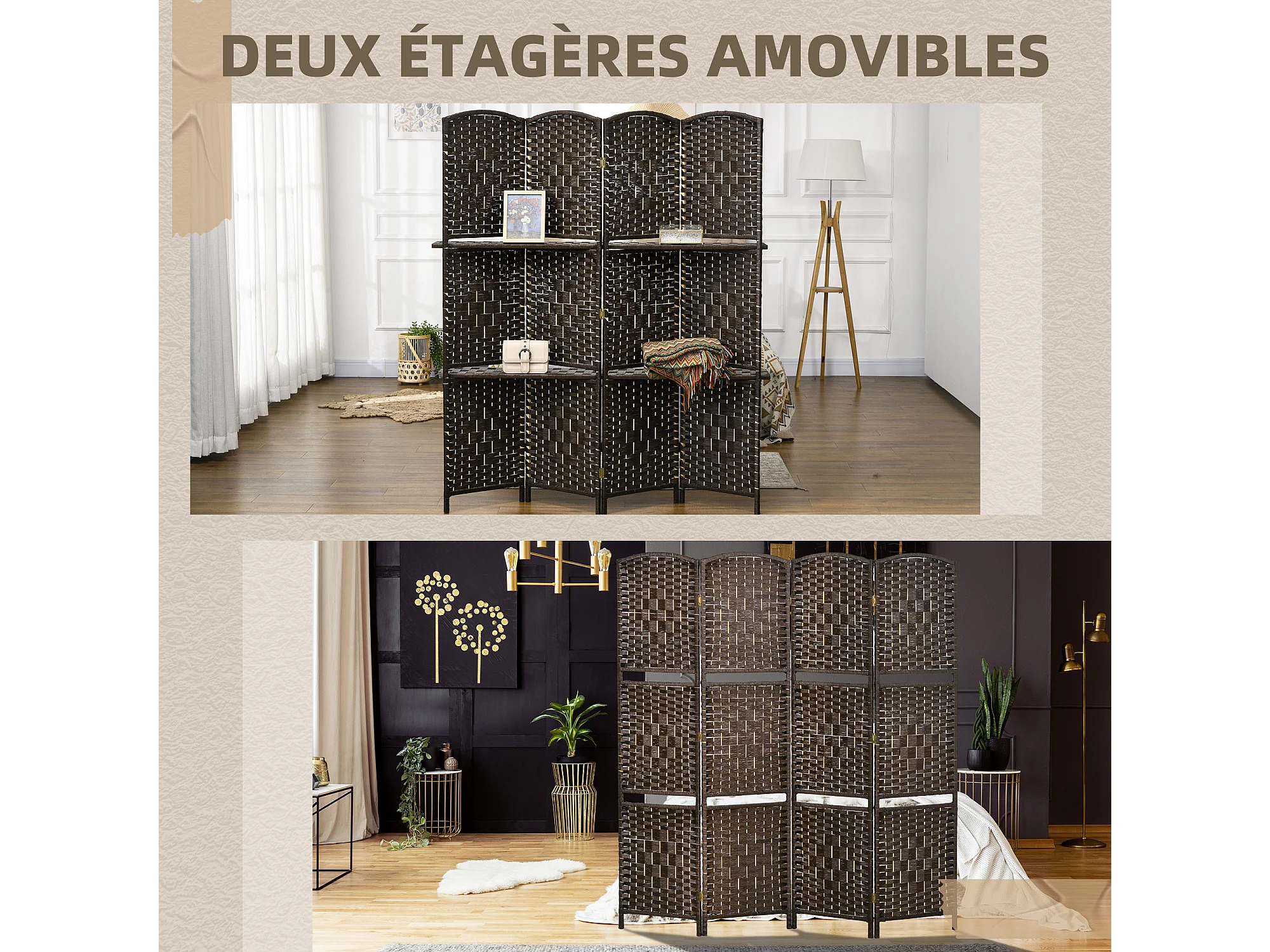 Paravent séparateur de pièce 4 panneaux pliables dim. 160L x 170H cm - 2 étagères - bois fibre papier brun