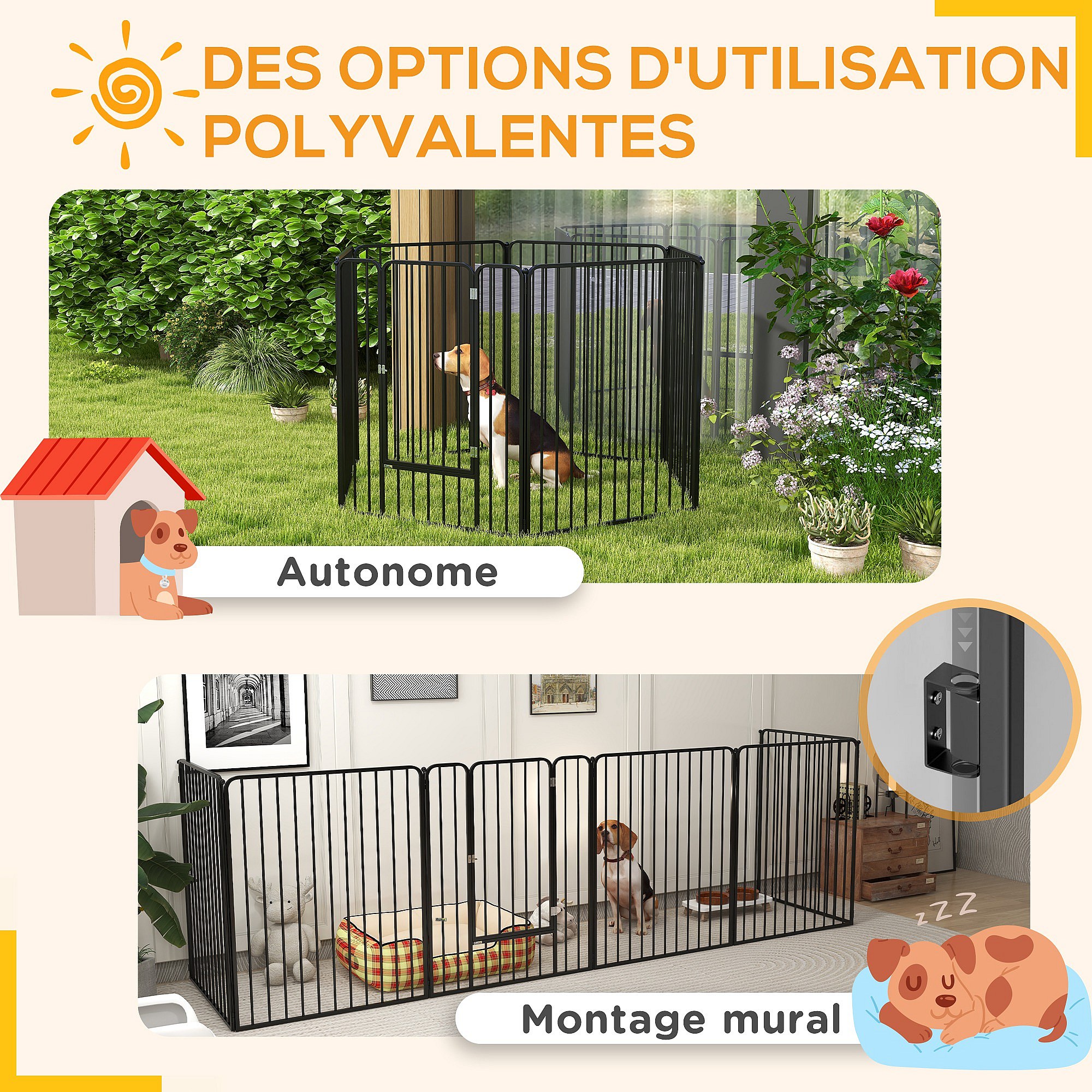 Parc enclos modulable pour chien animaux porte verrouillable 8 panneaux dim. panneau 61L x 61H cm métal noir