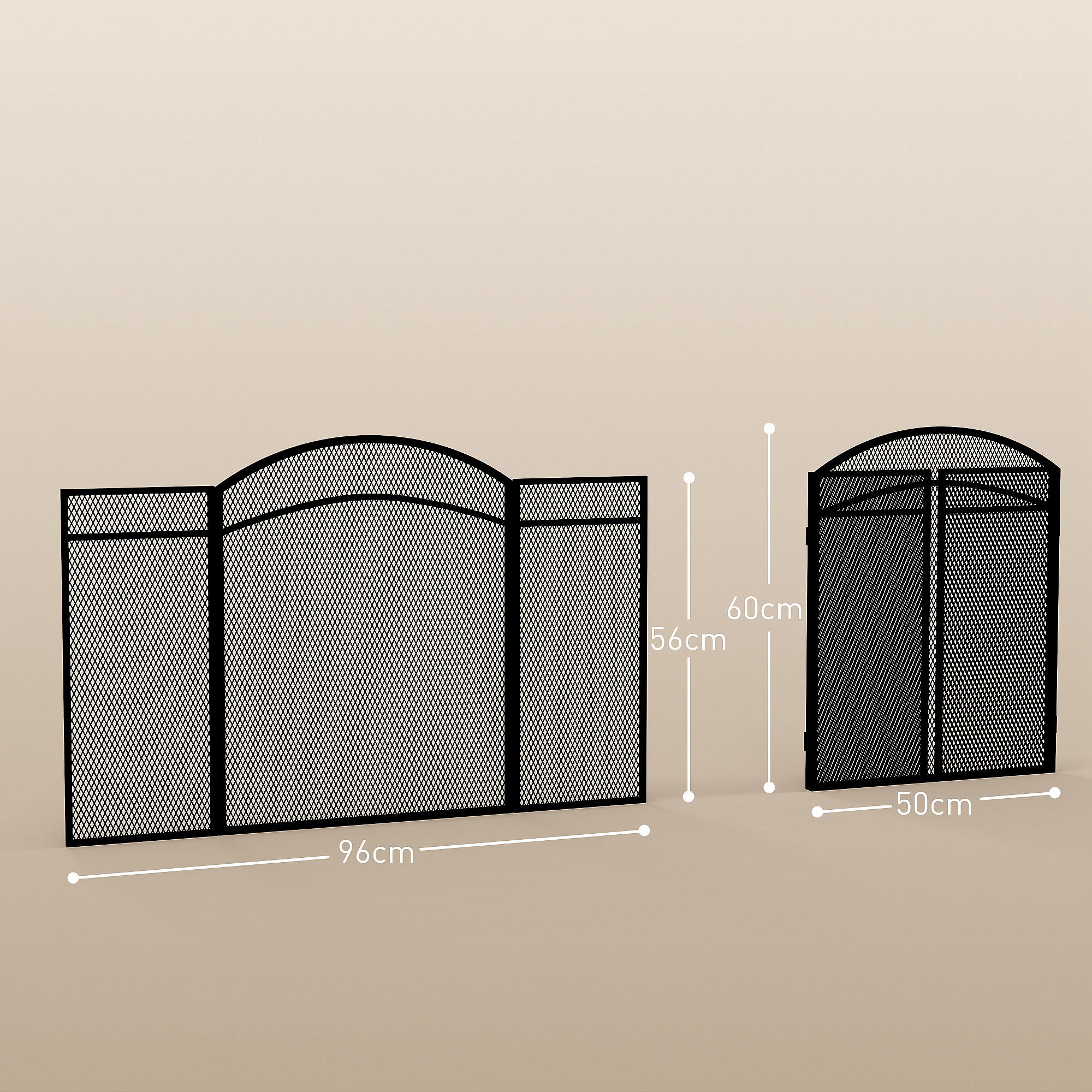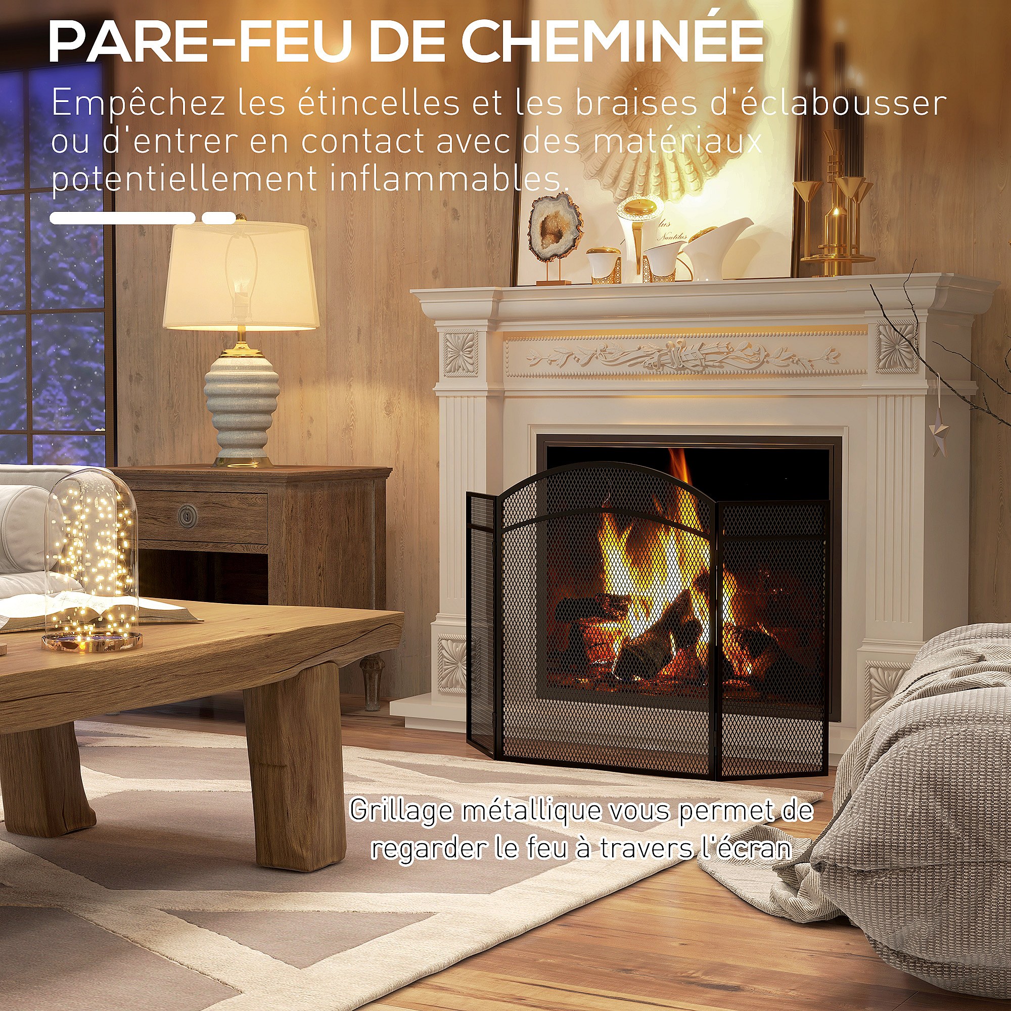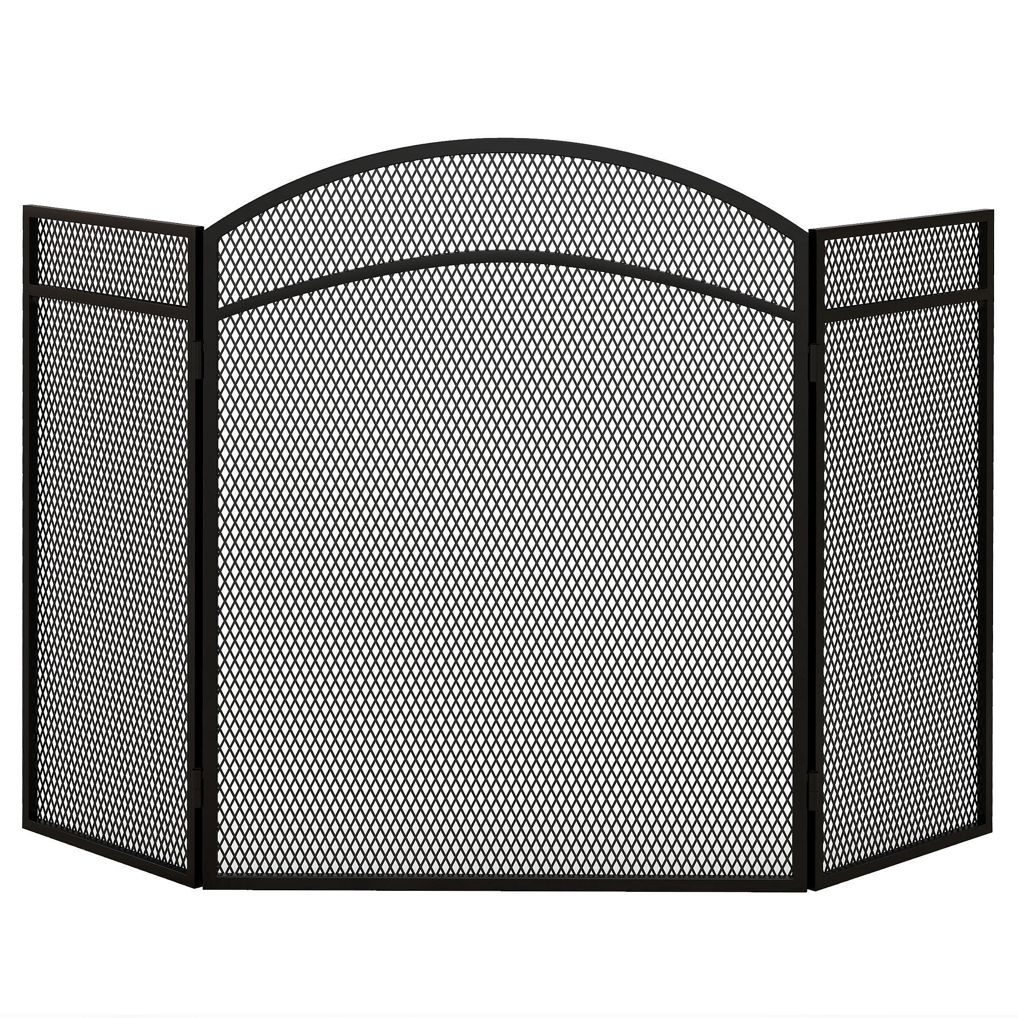 Pare-feu cheminée pliable 3 panneaux métal maille losange noir