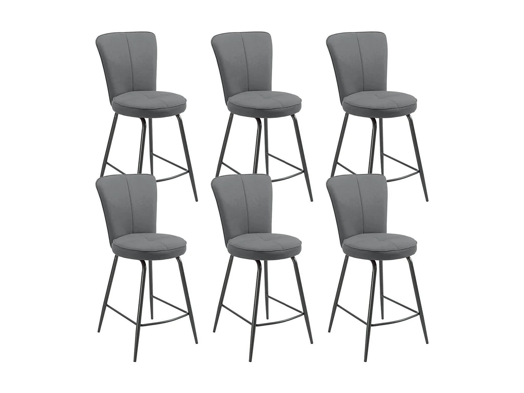PARIL - Lot de 6 Tabourets de Bar Matelassés Gris