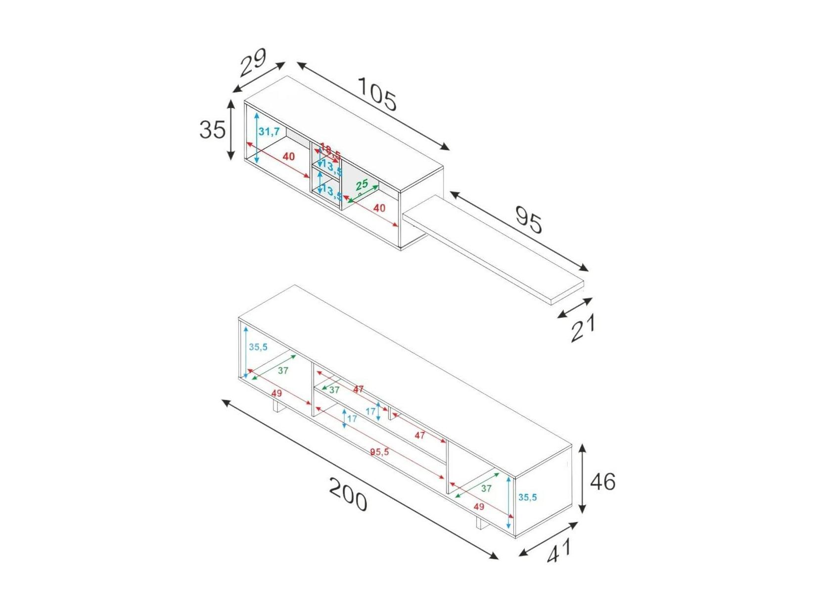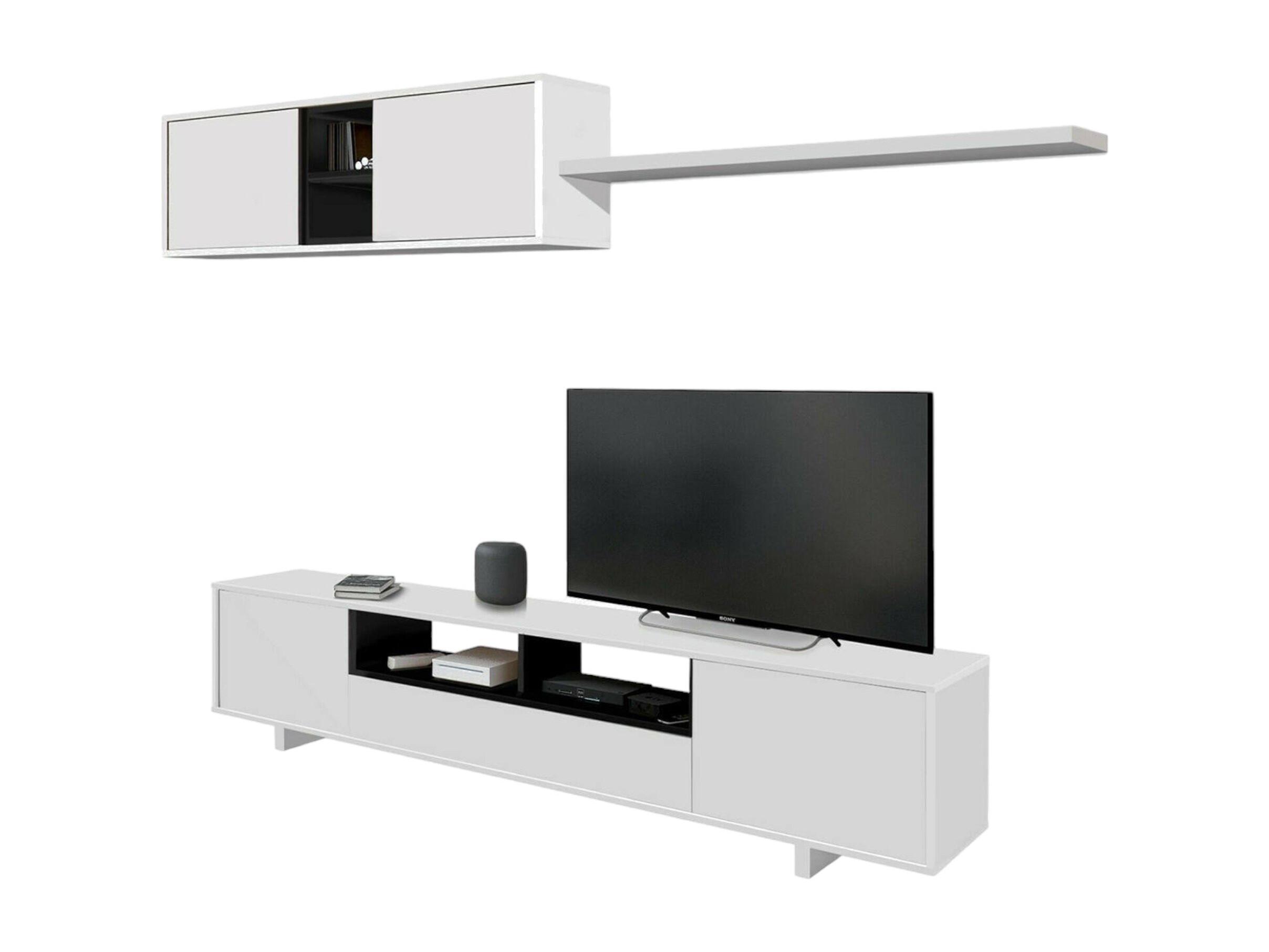 Système mural Dafanti, meuble TV, composition d'ensemble de salon, ensemble de salon avec unité murale, 200x41h46 cm, blanc brillant