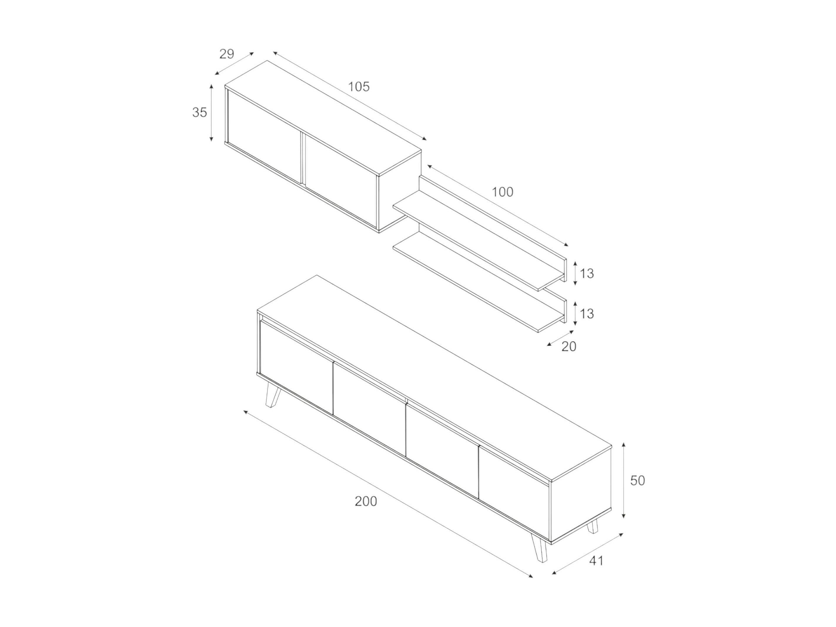 Système mural Daless, meuble TV meuble de salon, Composition de salon avec élément mural et étagère, 200x50h41 cm, Blanc et Chêne