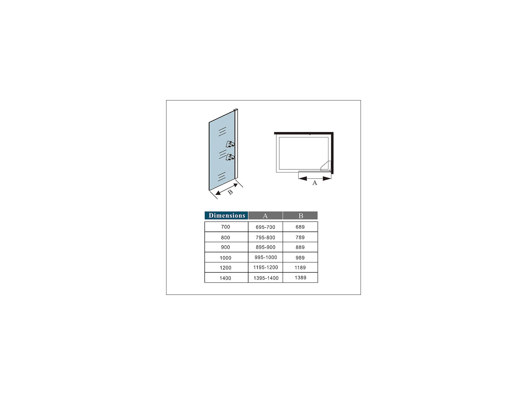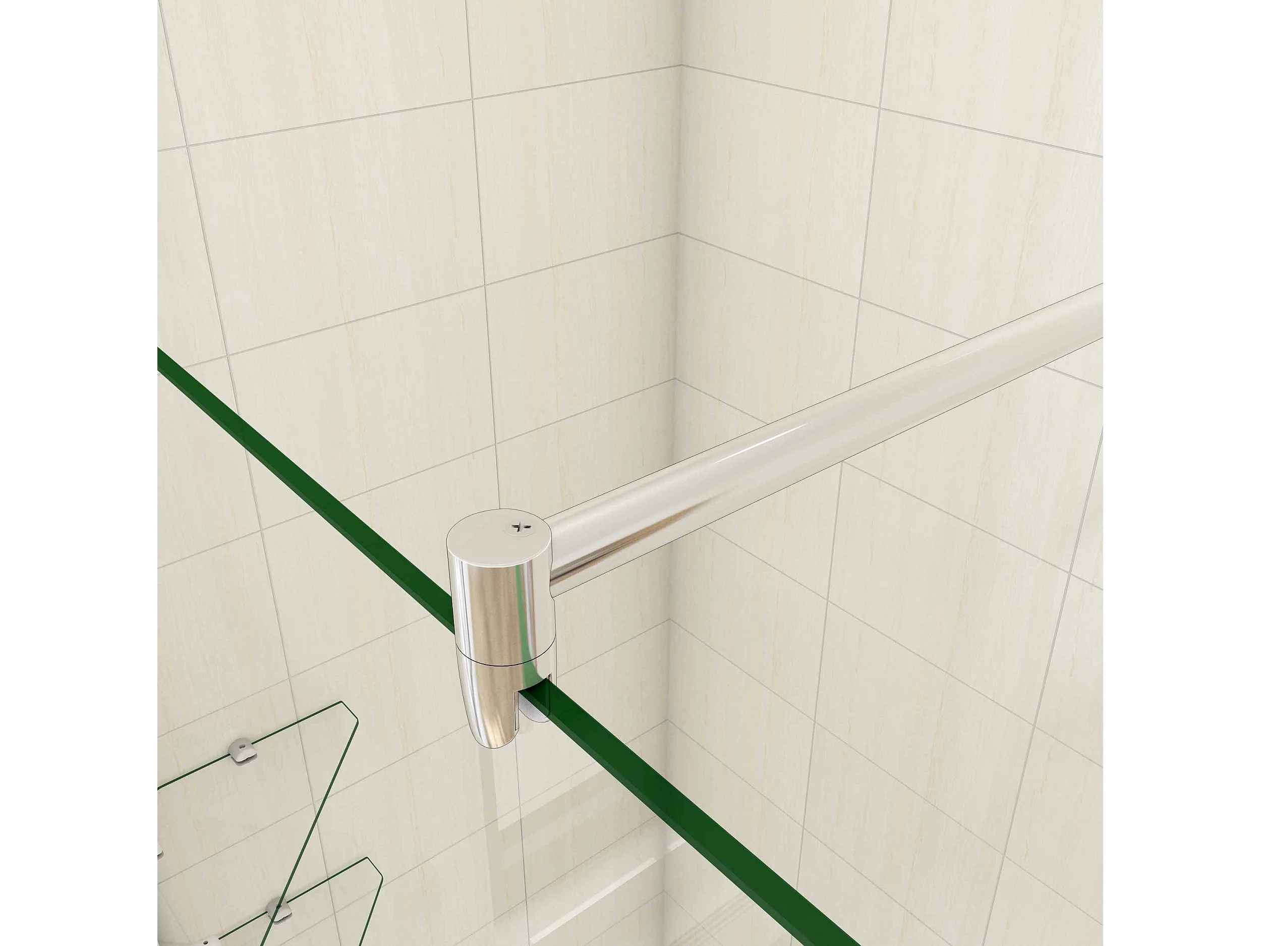 Paroi de douche à l'italienne 100x190cm avec étagères et barre de fixation 70-120cm en cylindrique, en 8mm verre anticalcaire
