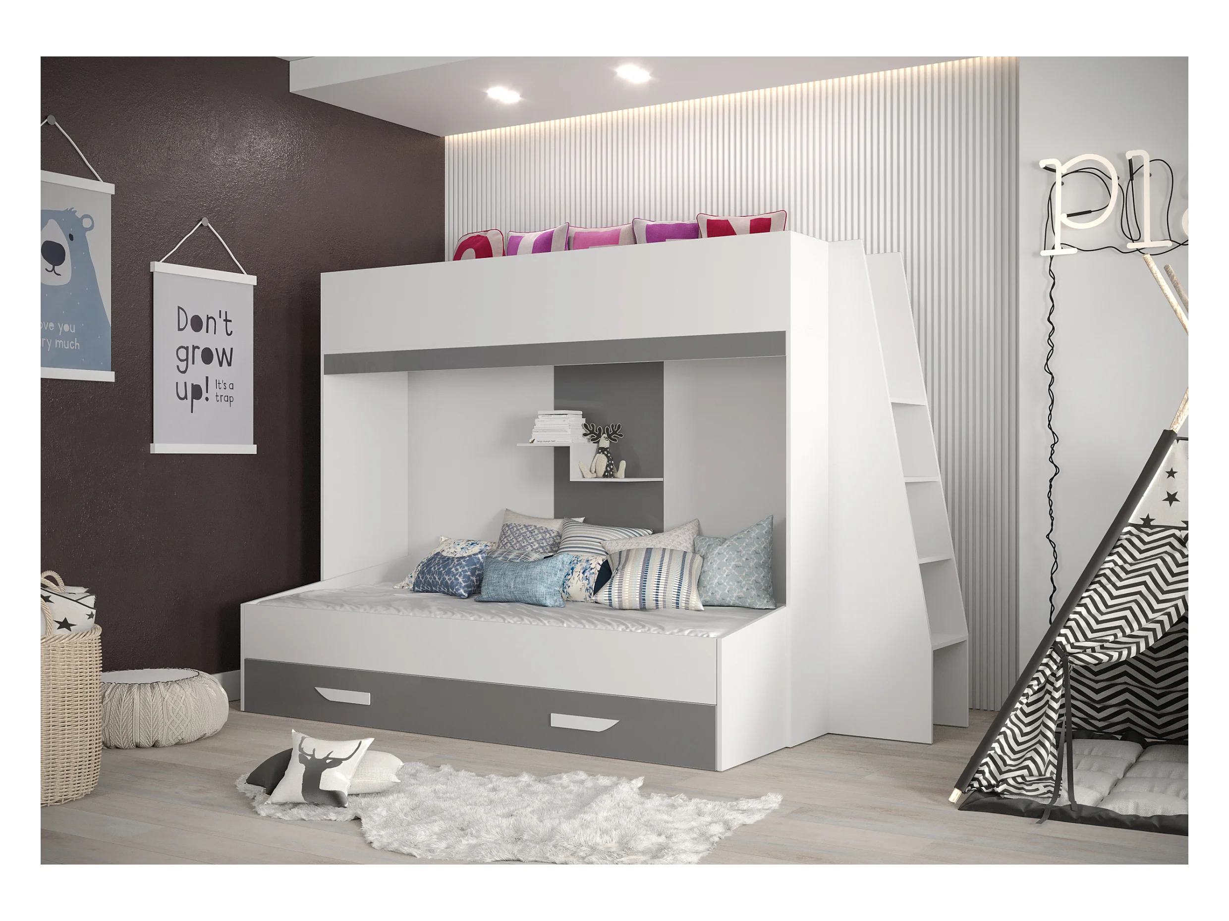 PARTY 17 Lit superposé 247/165/135 (blanc/gris)