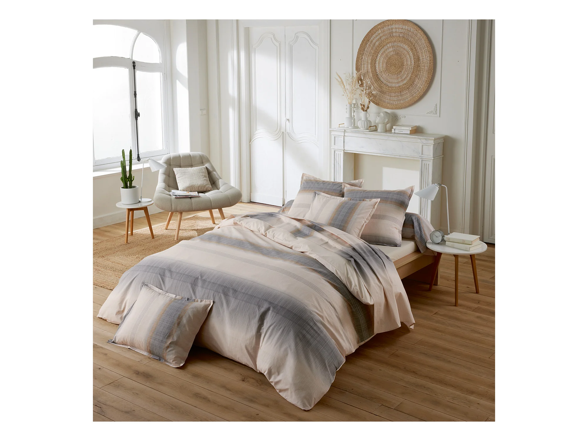 Parure de lit 140x200 cm 65x65 cm percale ESTEBAN beige 2 pièces