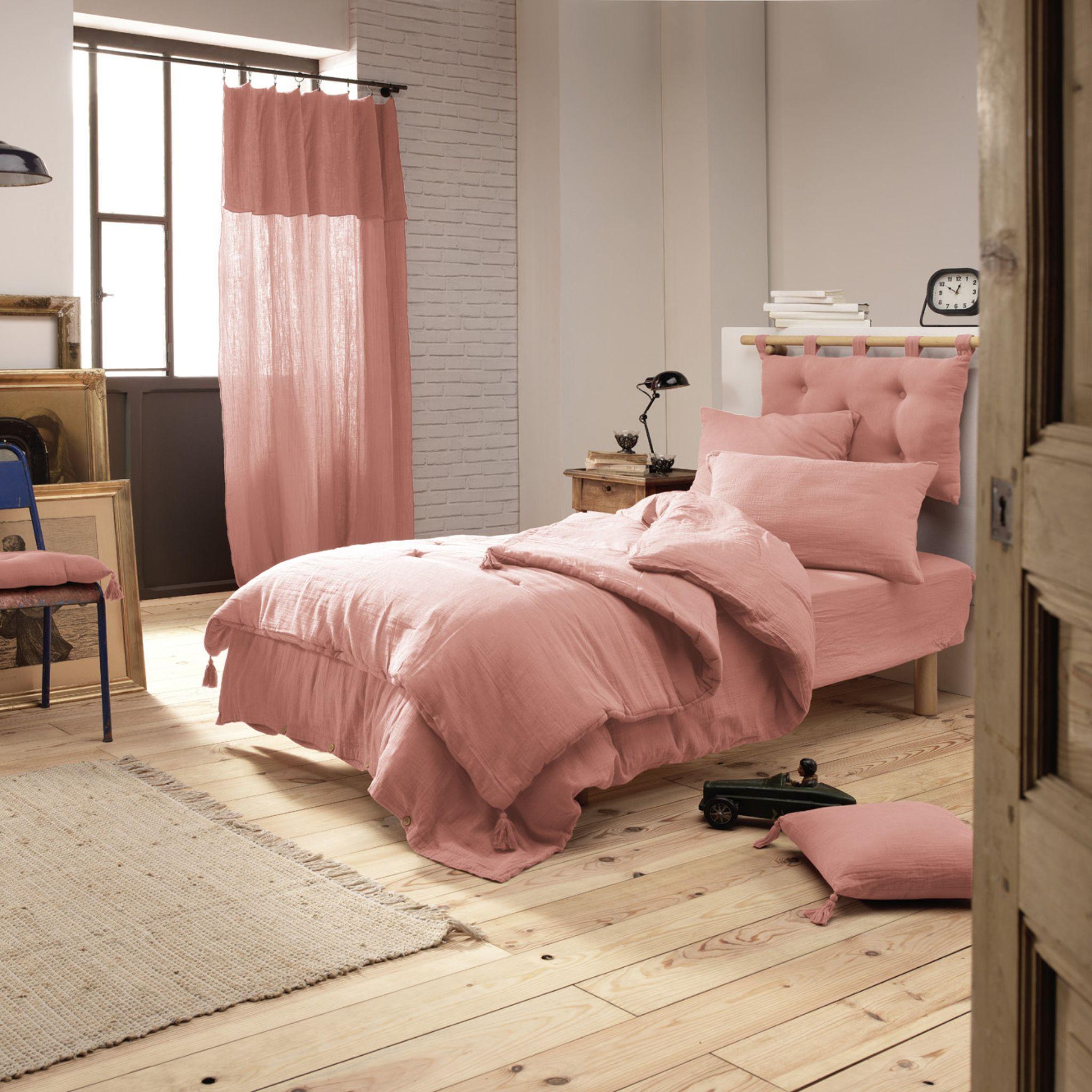 Parure de lit 140x200 double gaze de coton rose pêche Terre de Nuit