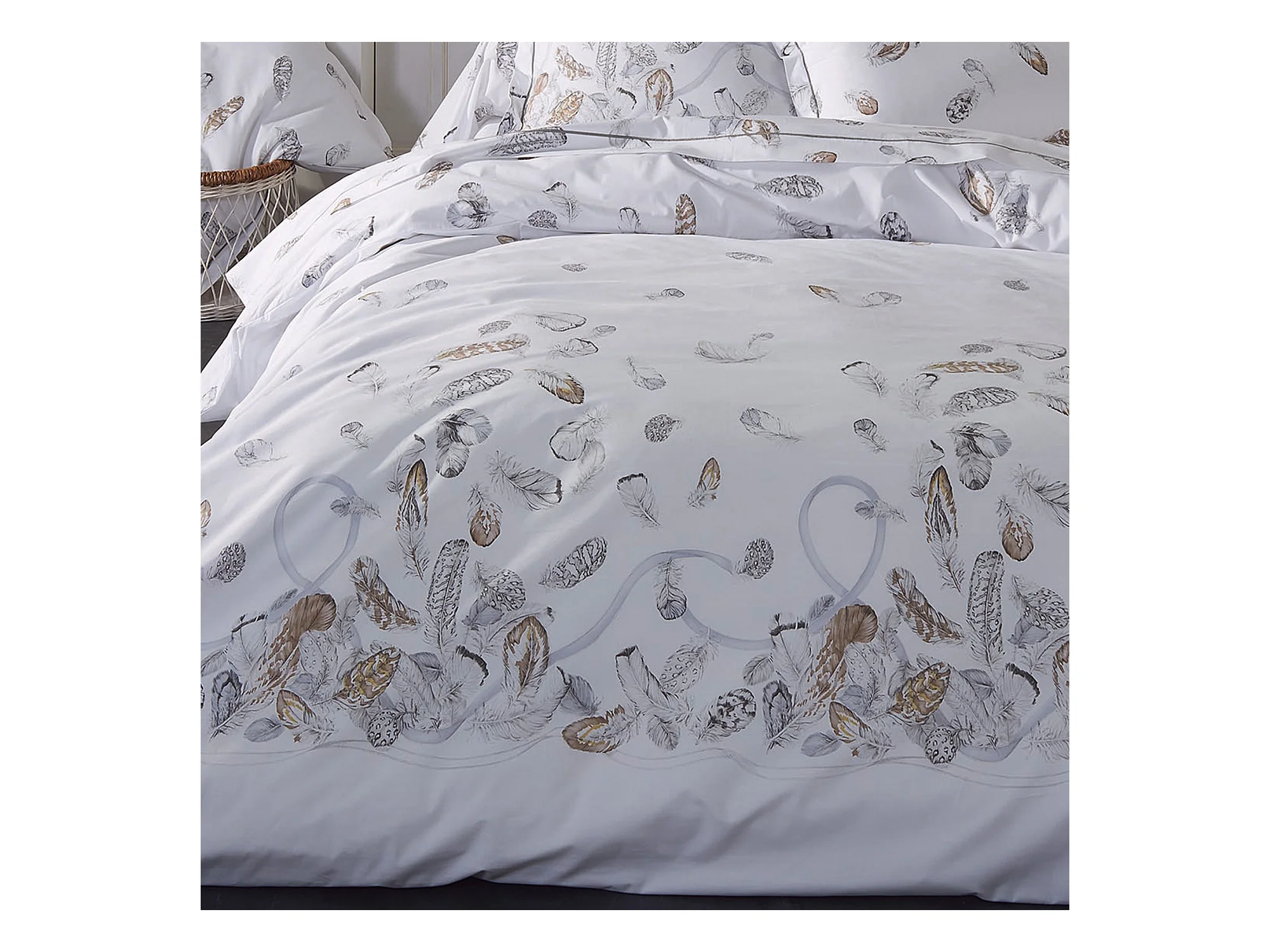 Parure de lit 3 pièces 200x200 cm taies 65x65 cm Percale pur coton PLUMES
