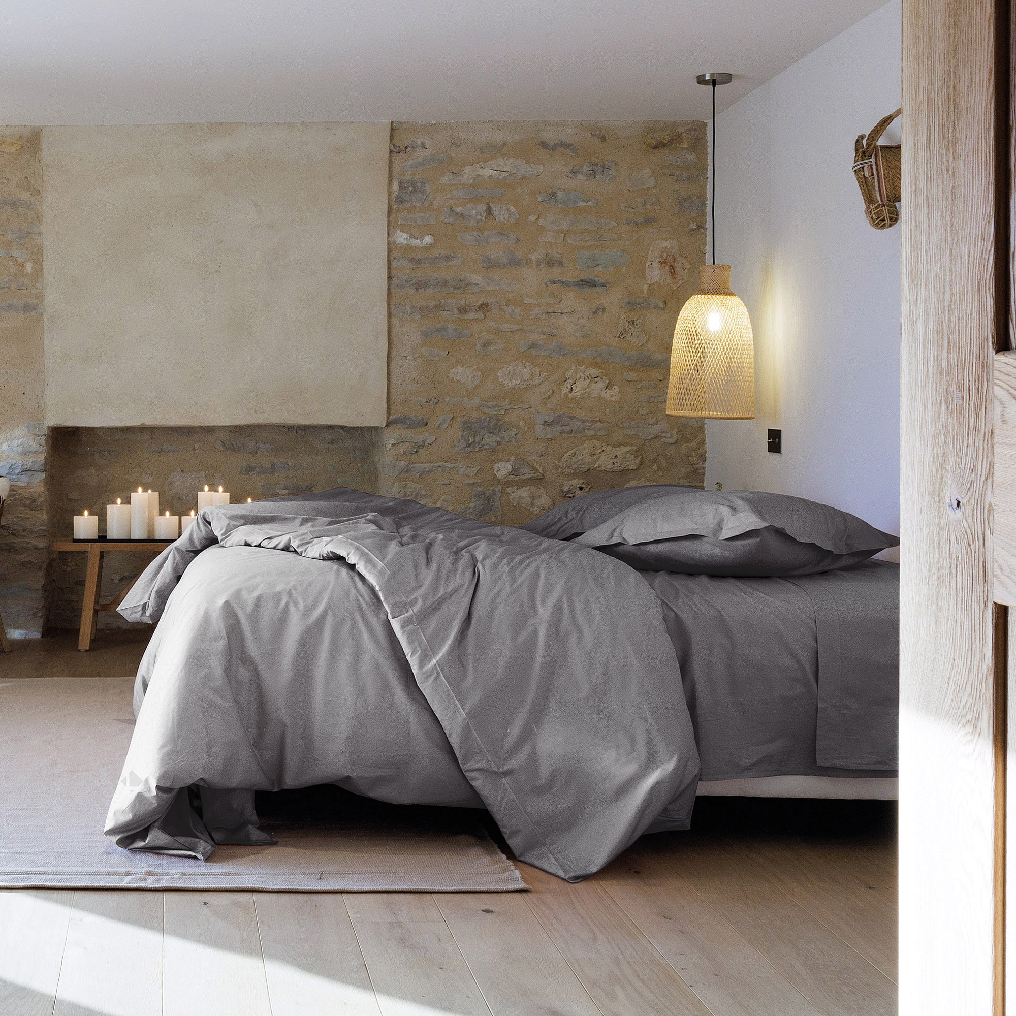 Parure de lit 200x200 cm set 50x70 cm percale MANOIR gris Ardoise