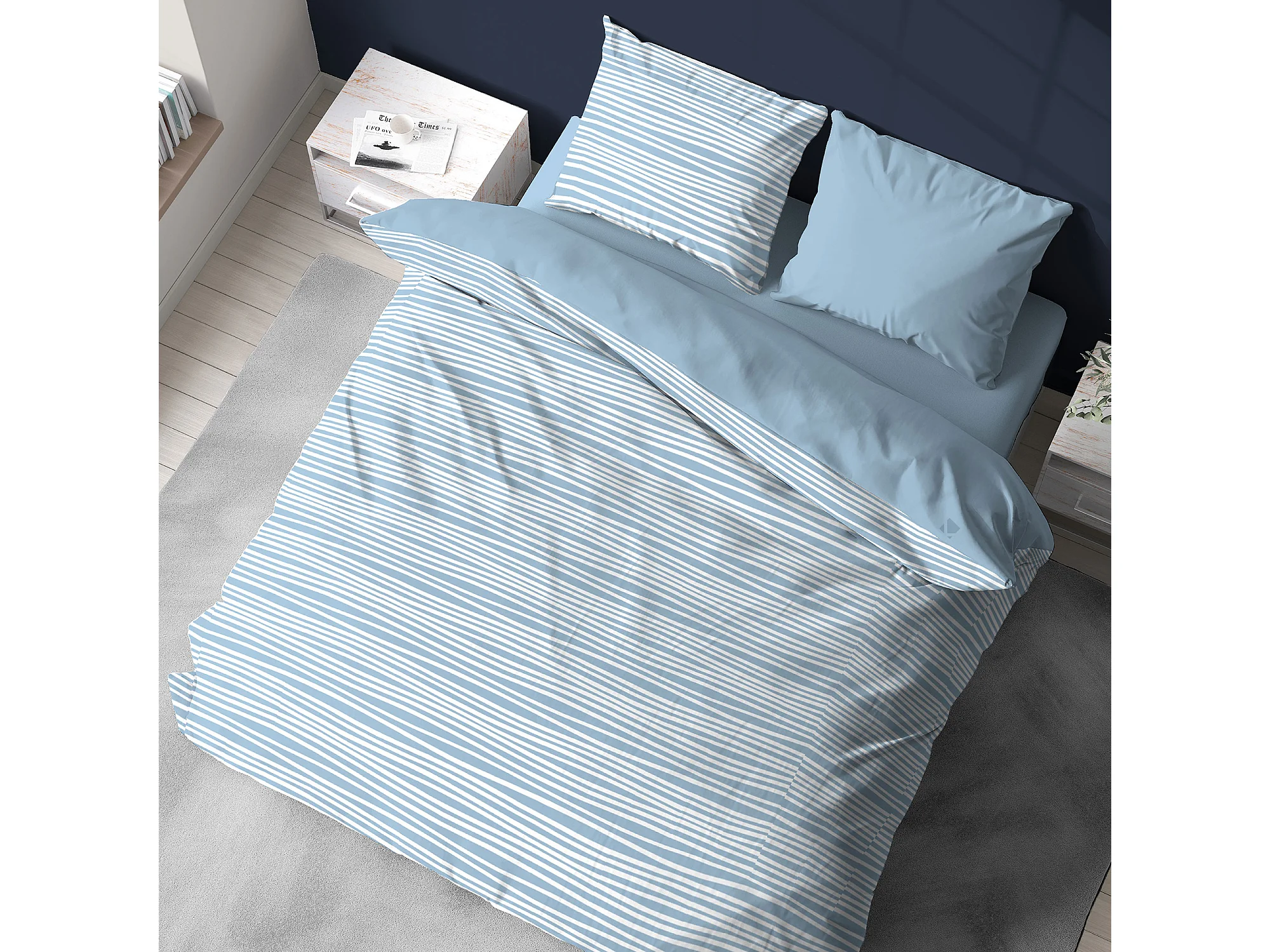 Parure de lit 240x220 cm 100% polyester microfibre BLIS bleu 3 pièces