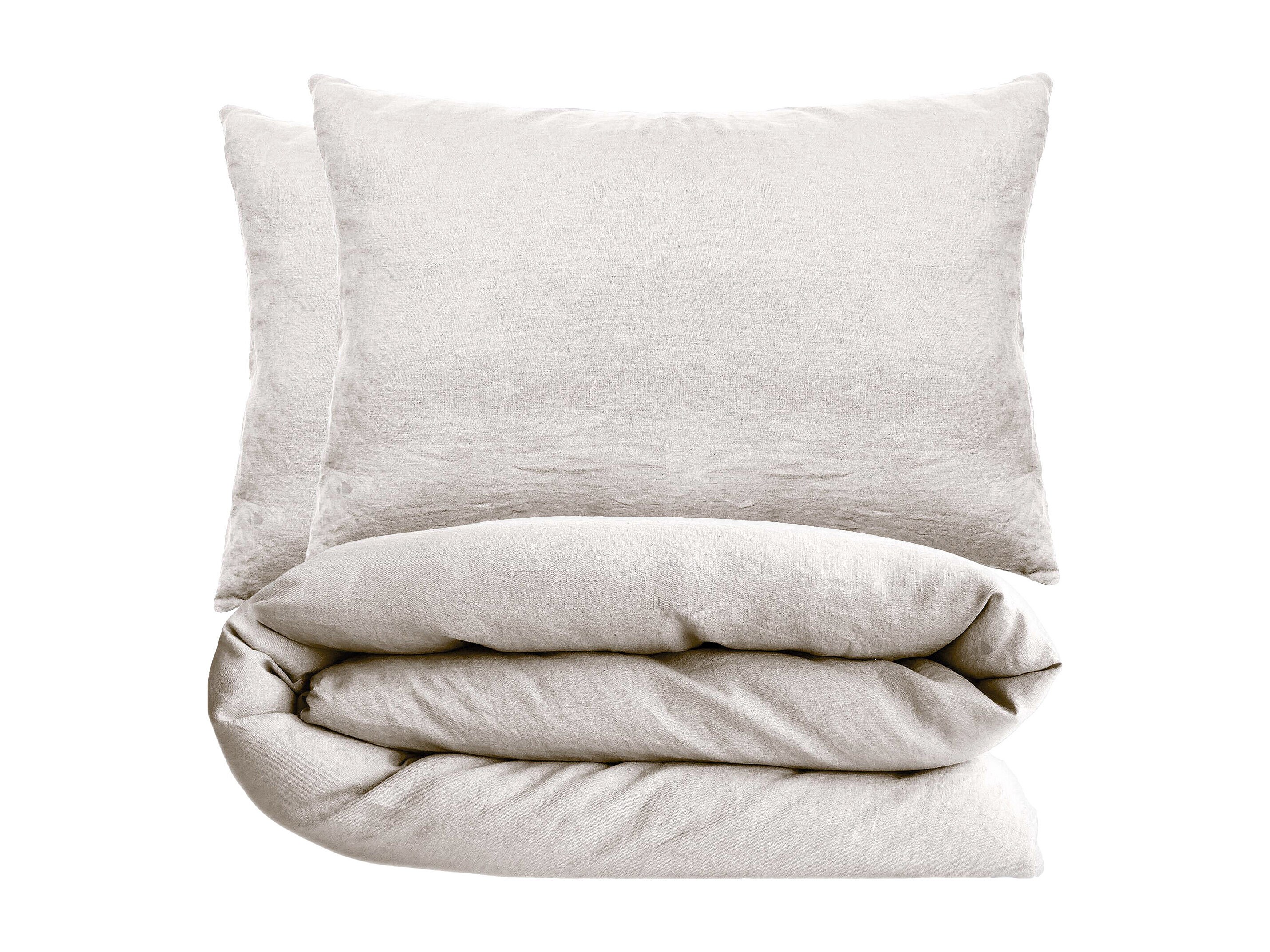 Parure de lit 260x240 cm et 65x65 cm coton lavé PALACE beige lin 3 pièces