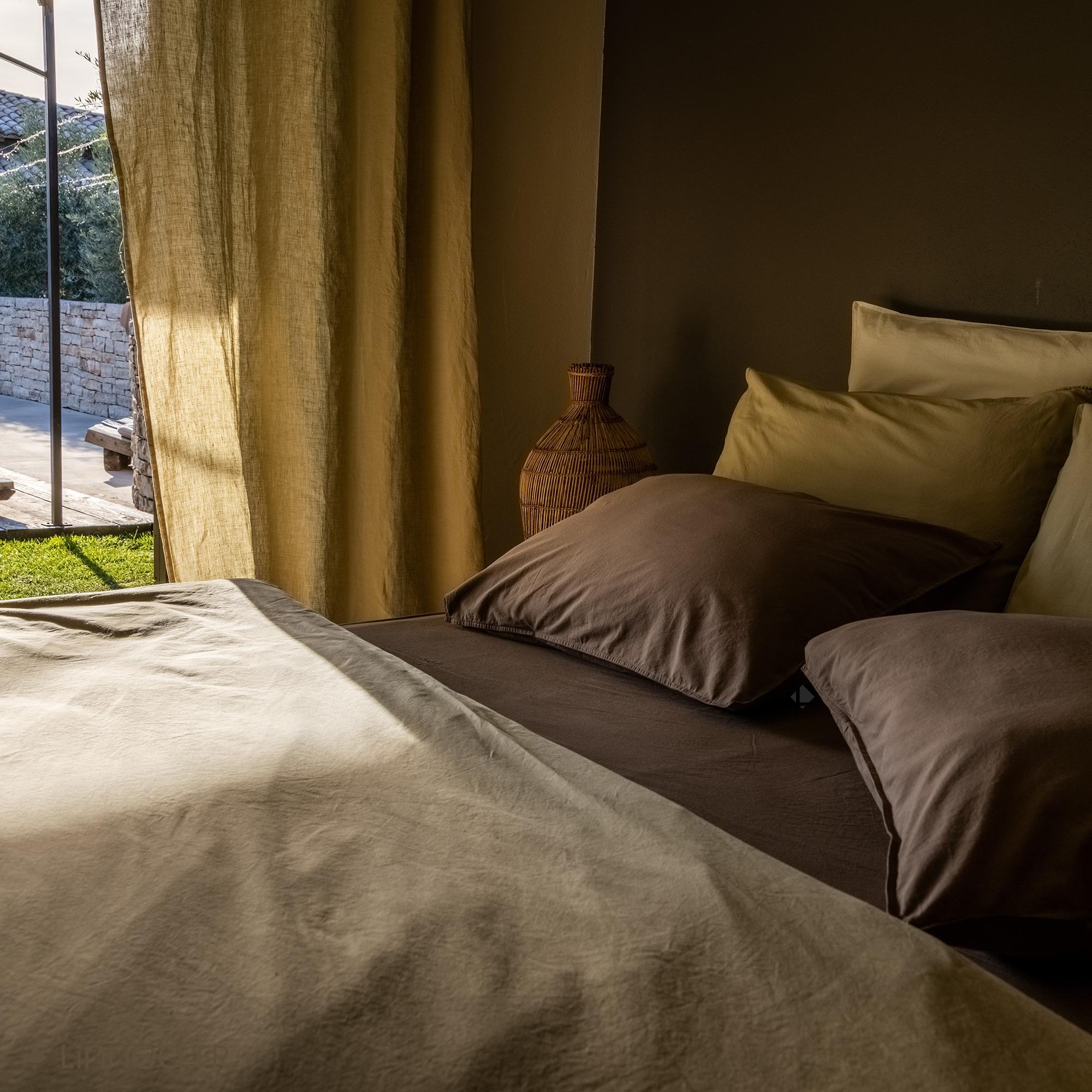 Parure de lit 260x240 cm double gaze de coton GAZGAZ beige Galet