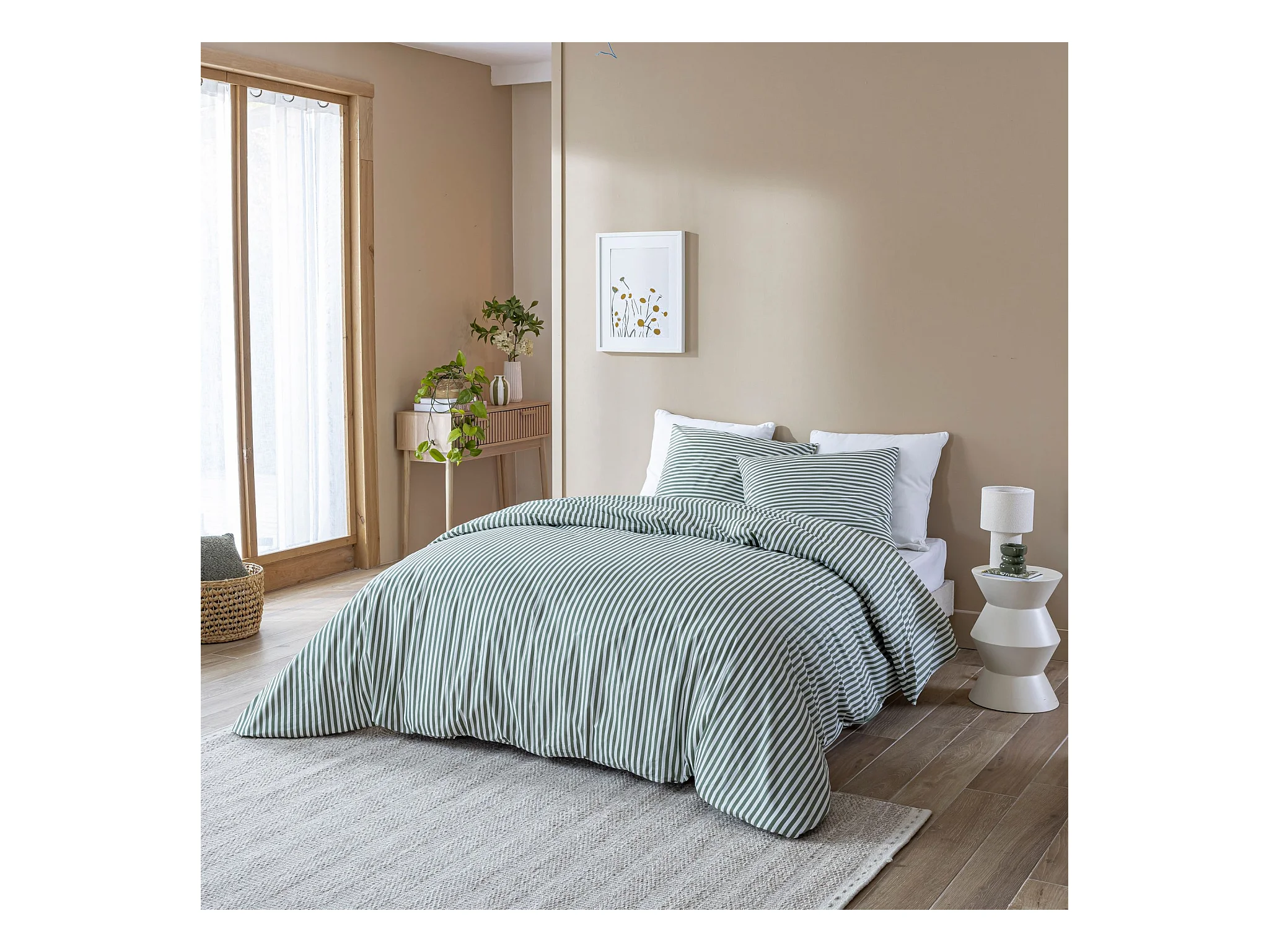 Parure de lit 140x200 coton à rayures vert Terre de Nuit Horizon