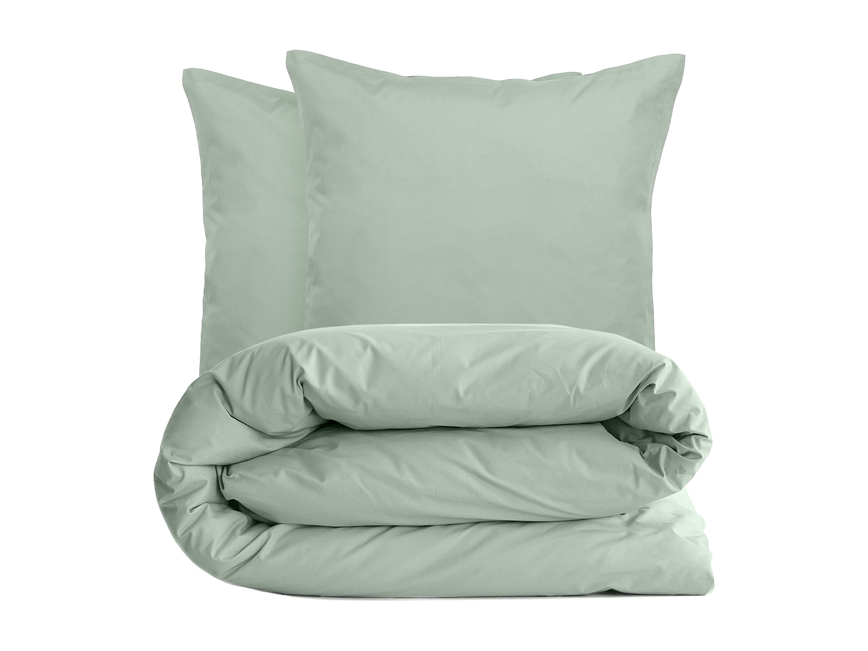 Parure de lit 280x240 cm et taie 65x65 cm percale MANOIR vert Lichen