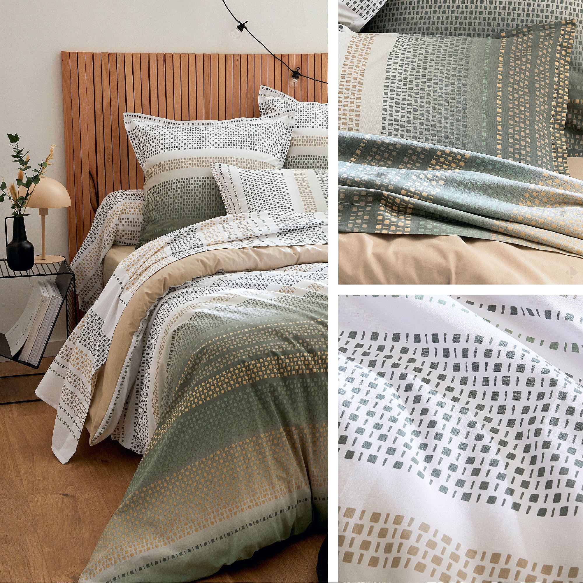 Parure de lit 2 personnes en coton 57 fils imprimé vert 240x220cm