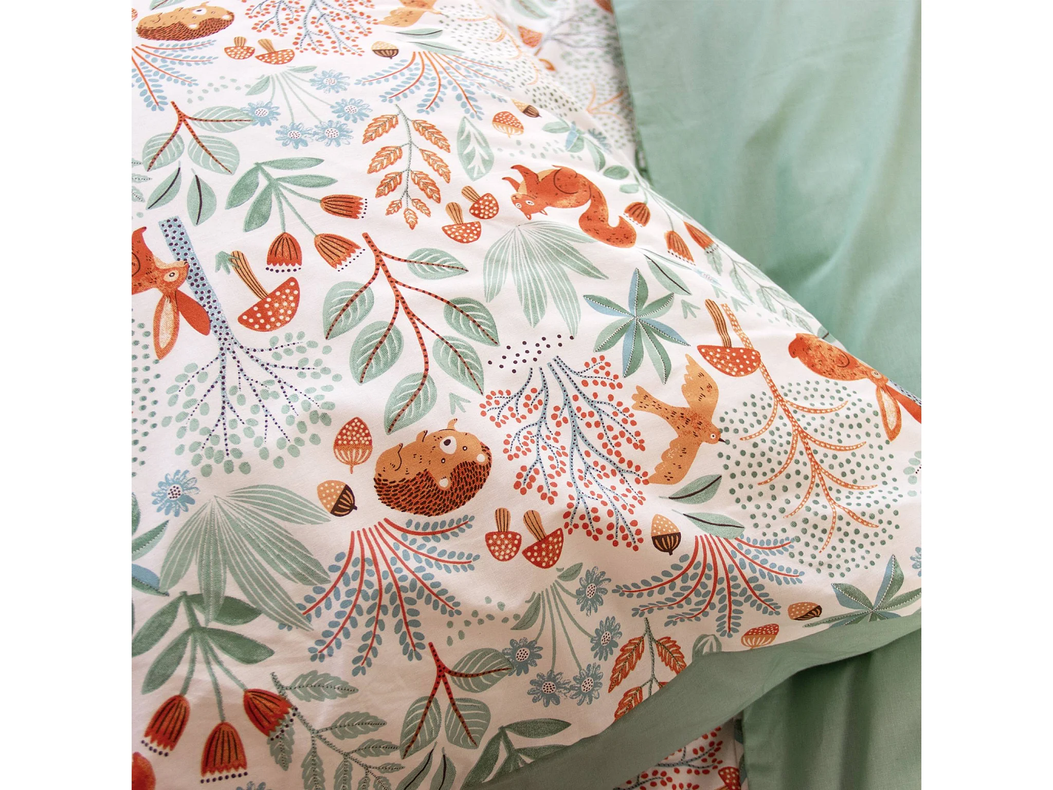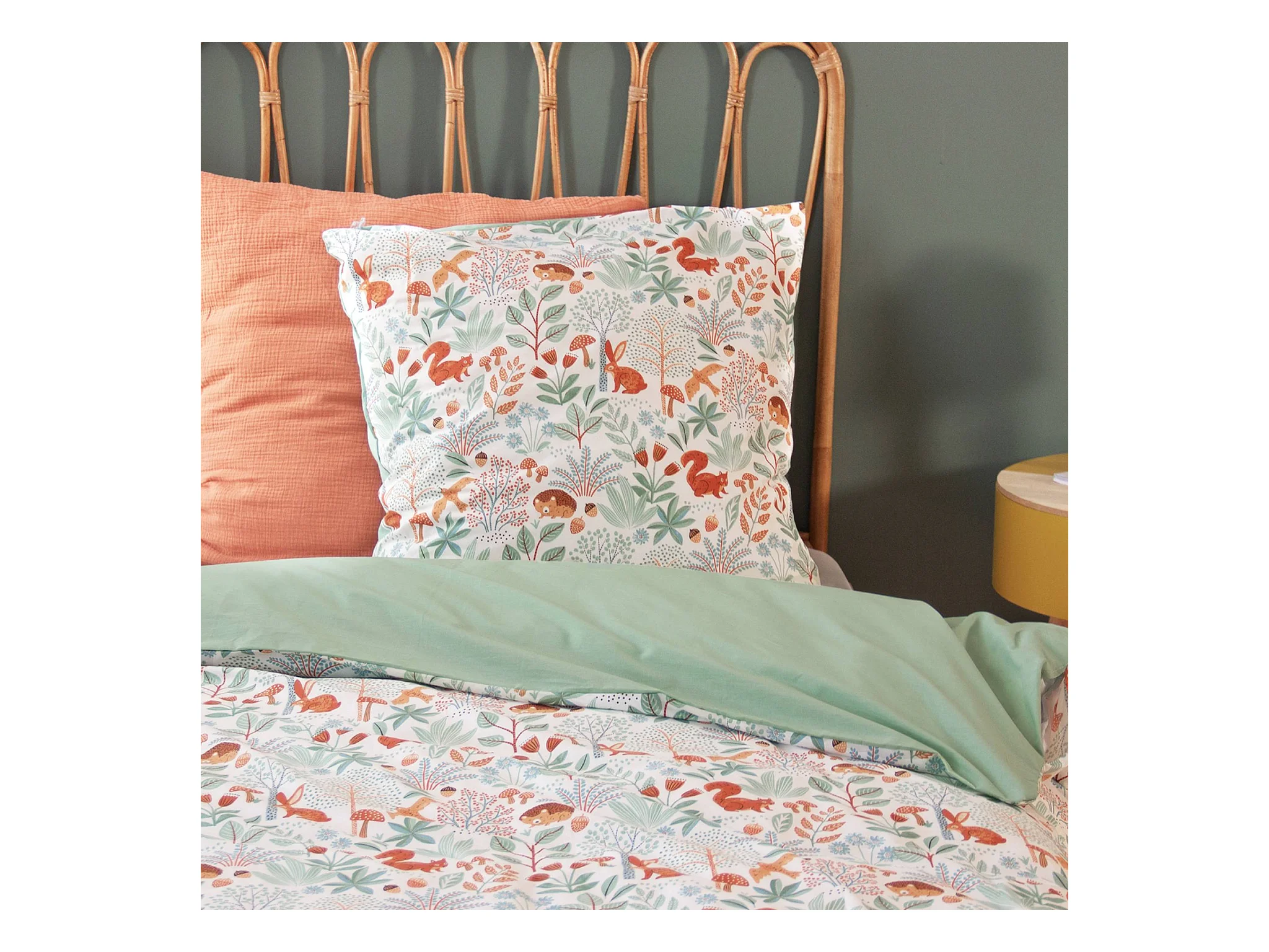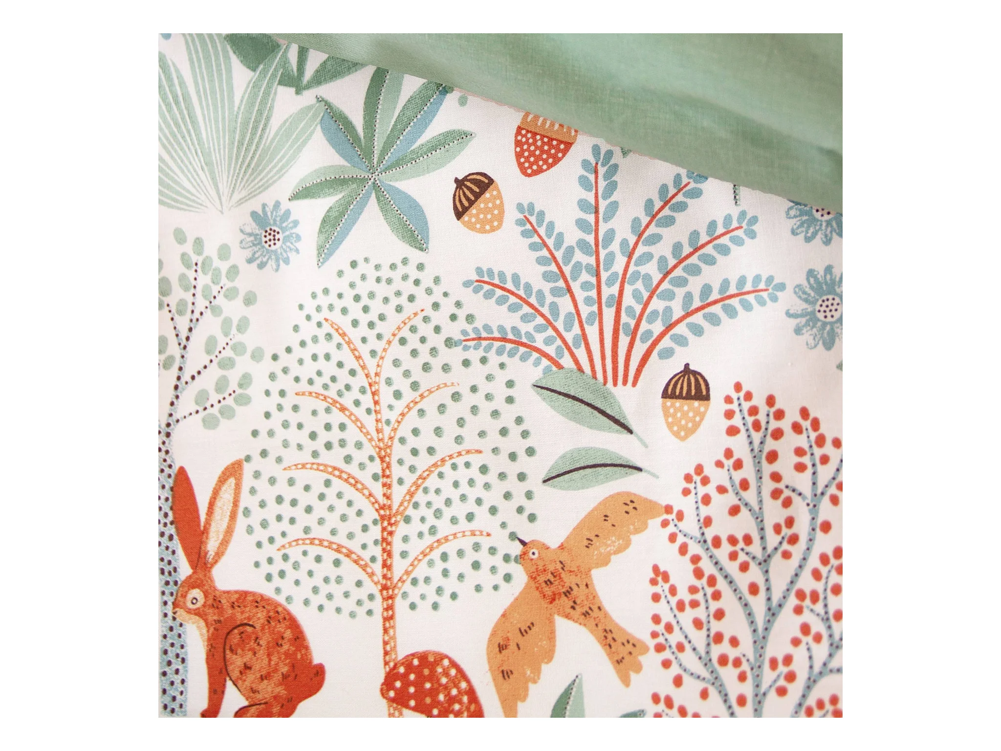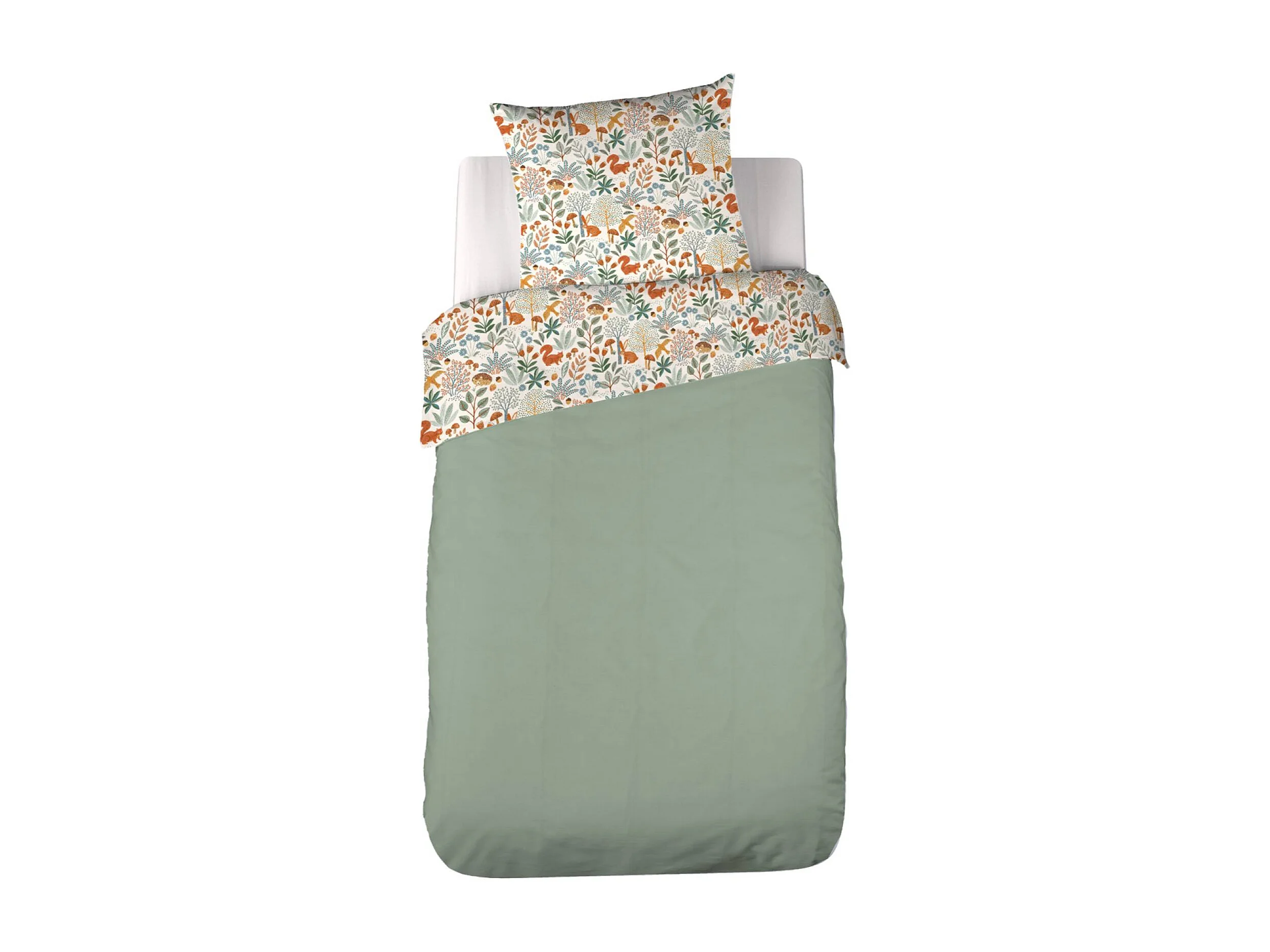 Parure de lit MAXENCE réversible 1 place imprimé thème automne. vert. 140 x 200cm