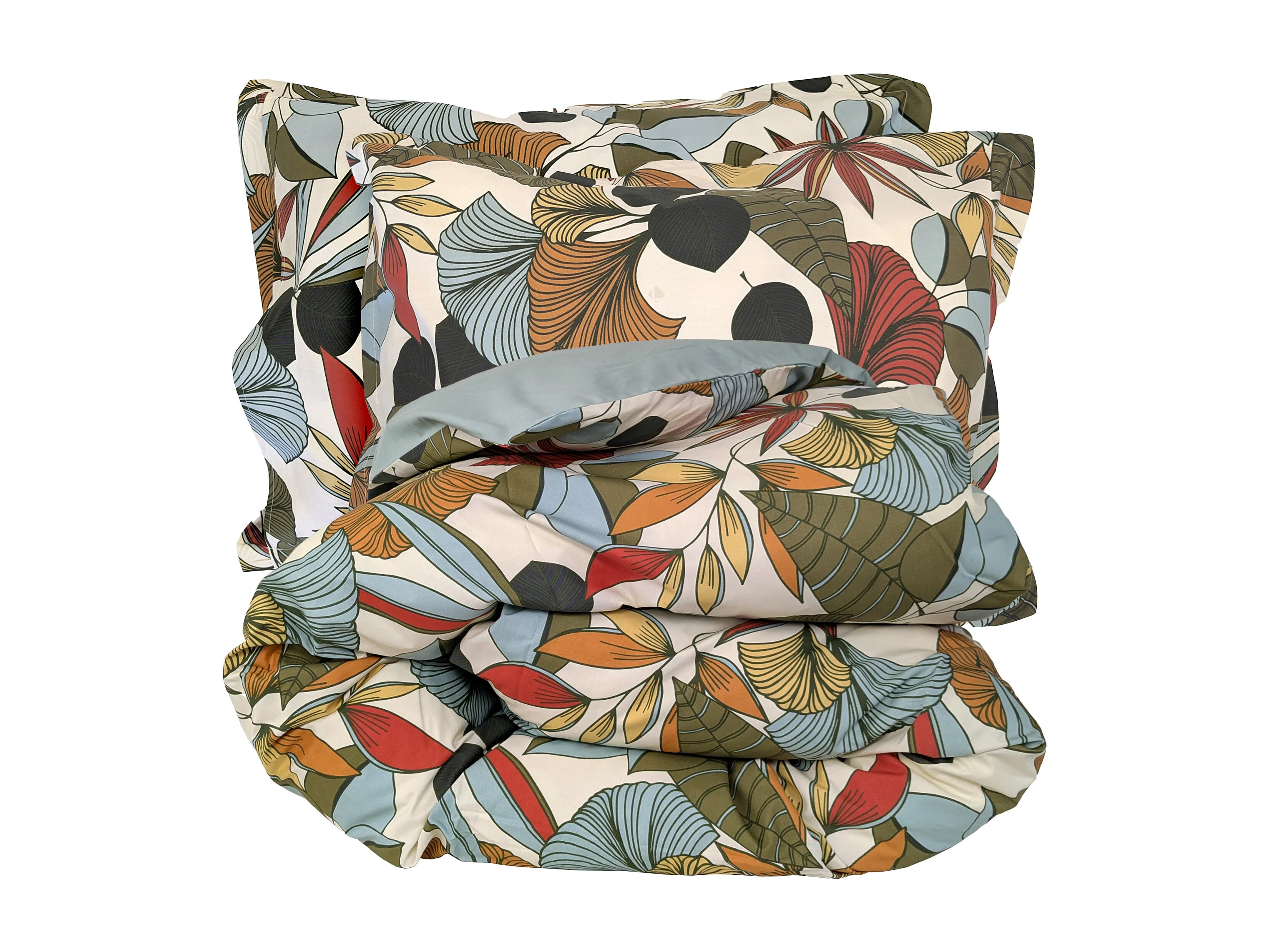 Parure percale de coton 280x240 cm 50x70 CASCADE vert Sauge 3 pièces