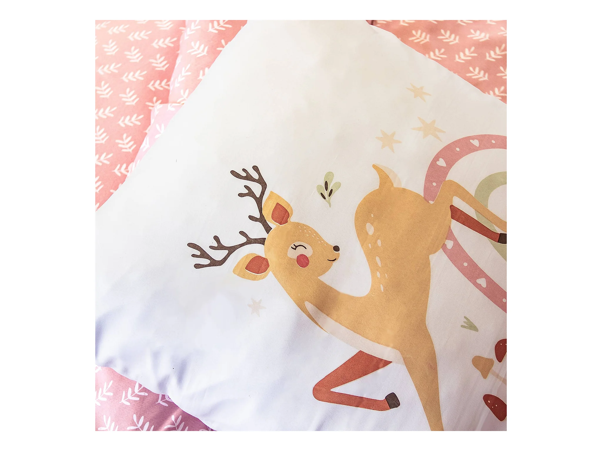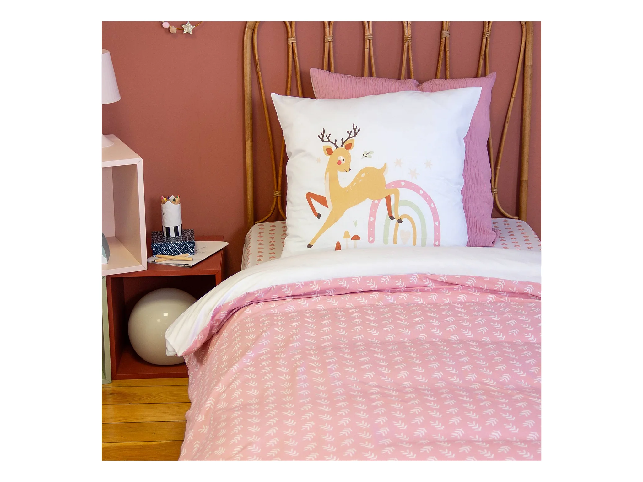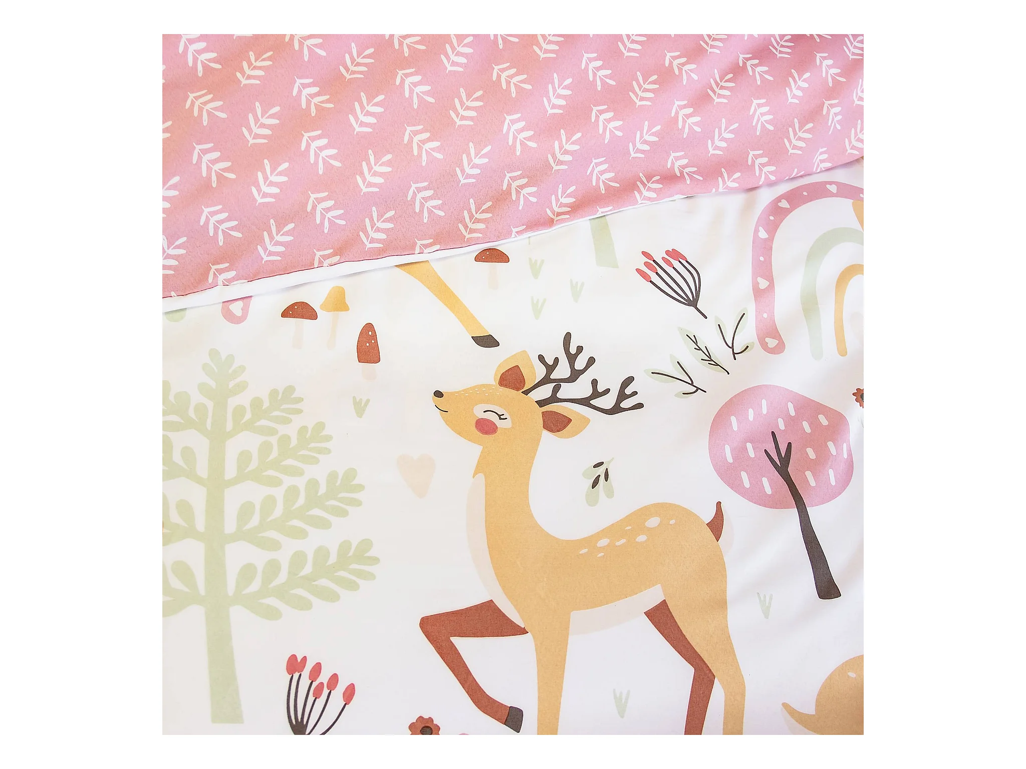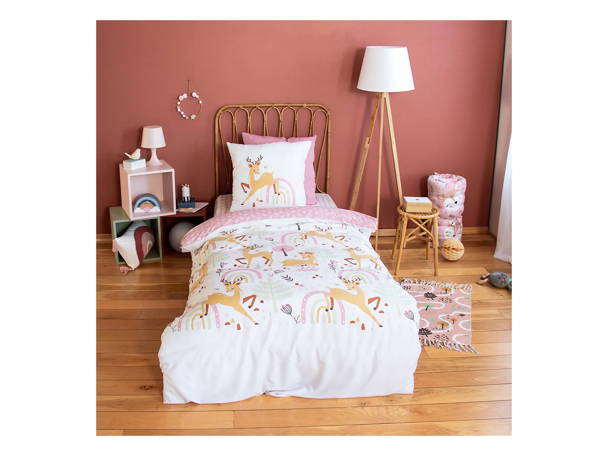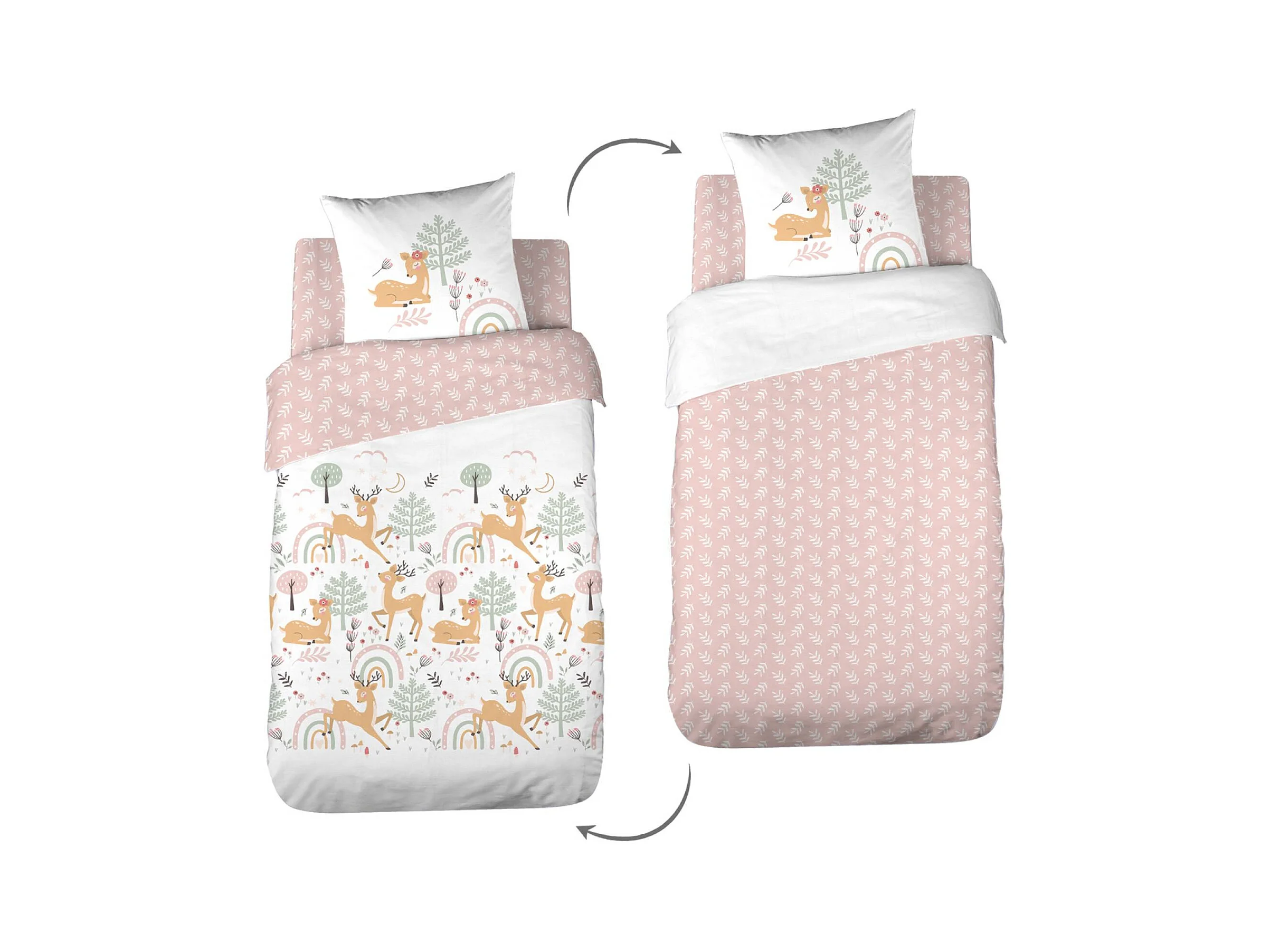 Parure de lit réversible LISE 1 place imprimé thème forêt enchantée en microfibre. 140 x 200cm. 1 housse de couette. 1 taie d'oreiller