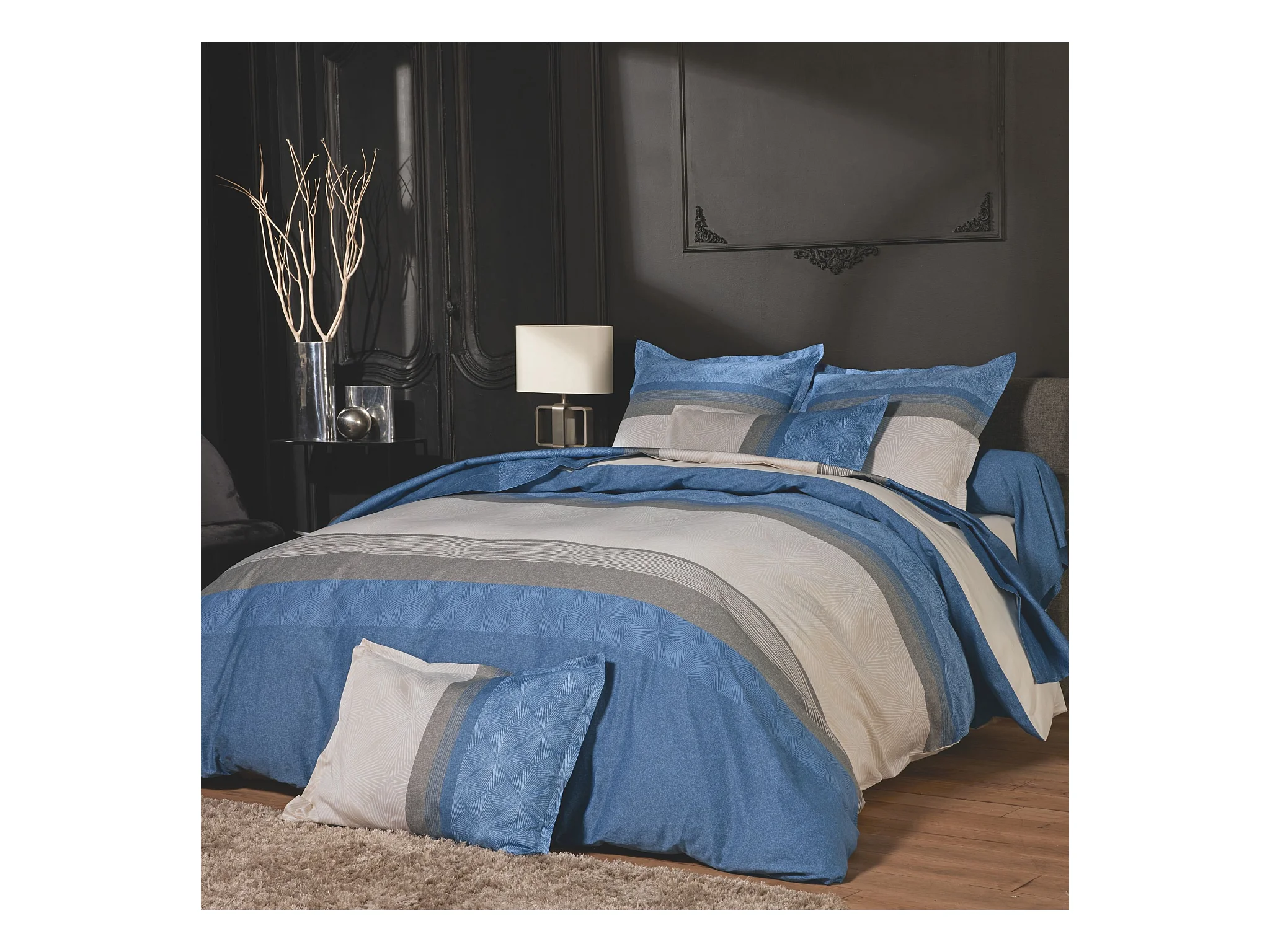 Parure de lit satin de coton Tiago bleu 240x220 - Tradilinge