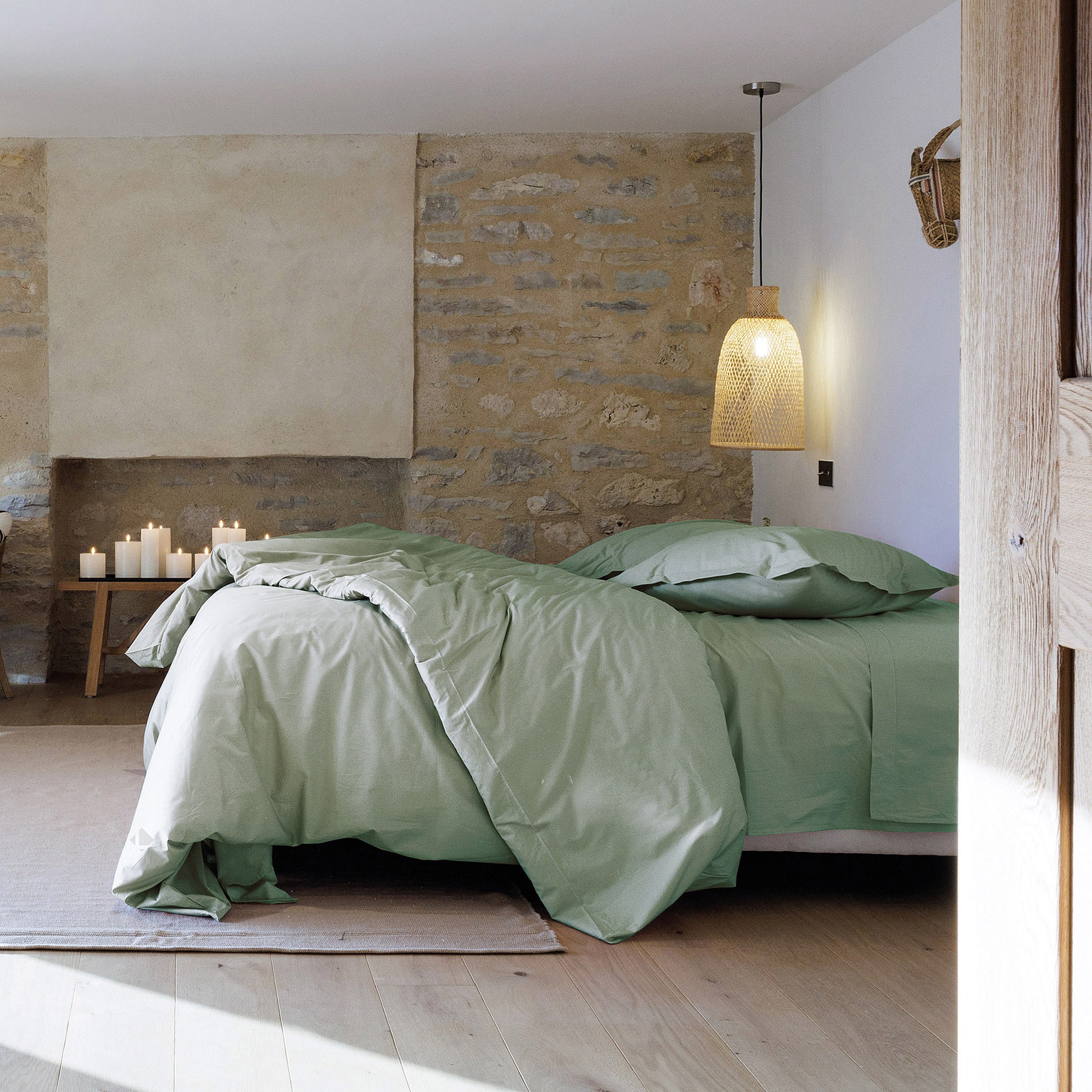 Parure de lit 240x220 cm set 65x65 cm percale MANOIR vert Lichen